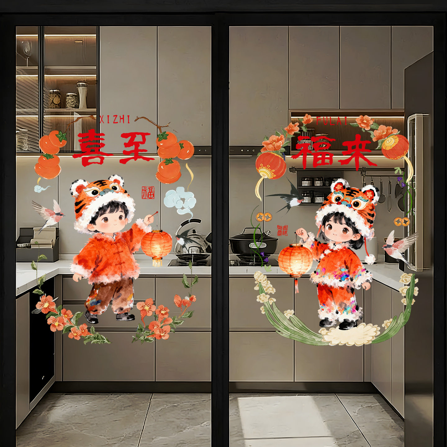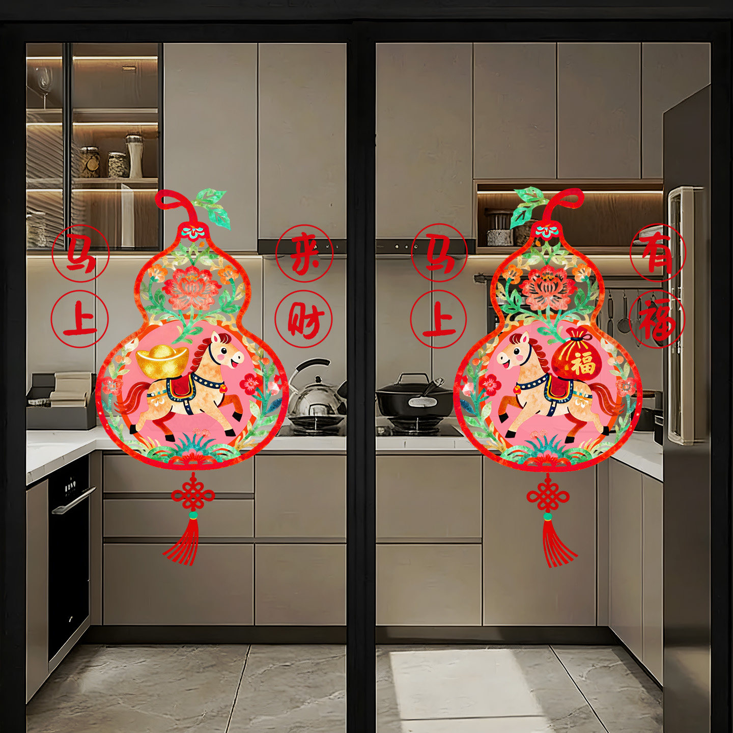 2026新马年装饰品布置场景春节窗花窗户玻璃门贴纸静电贴过年贴画