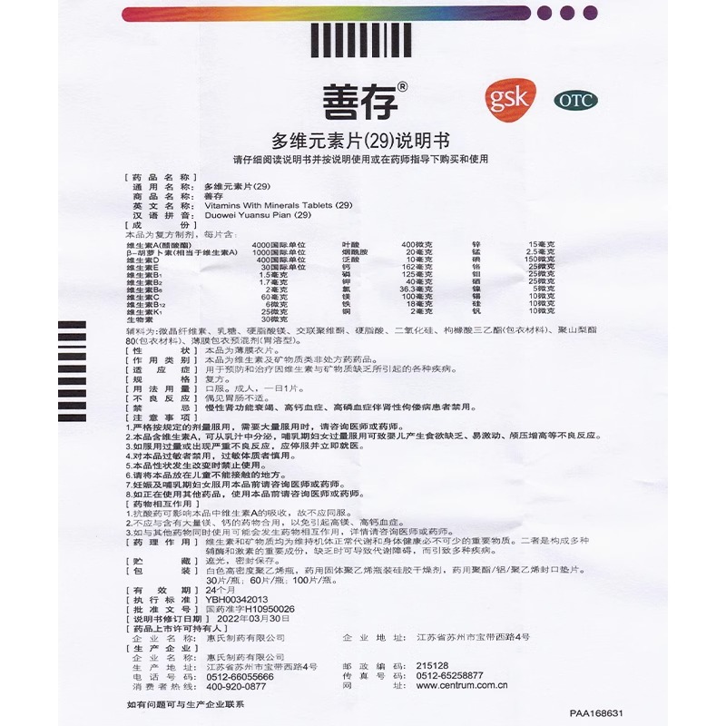 惠氏善存多维元素片(29)30片成人补充维生素矿物质复合维生素