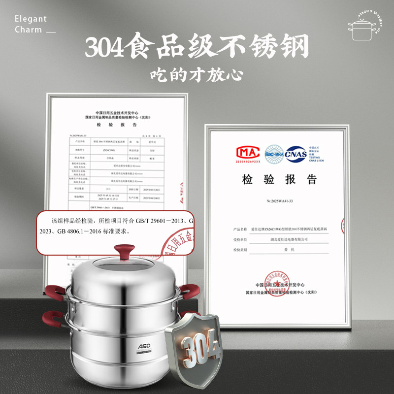 爱仕达304不锈钢双层家用蒸锅