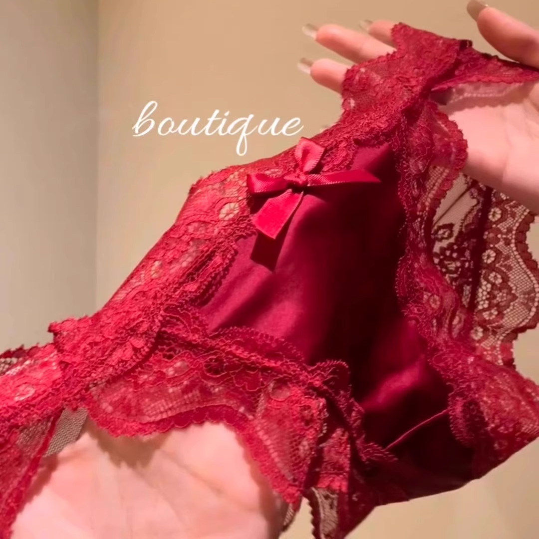 低腰抗菌显白色缎面蕾丝花边