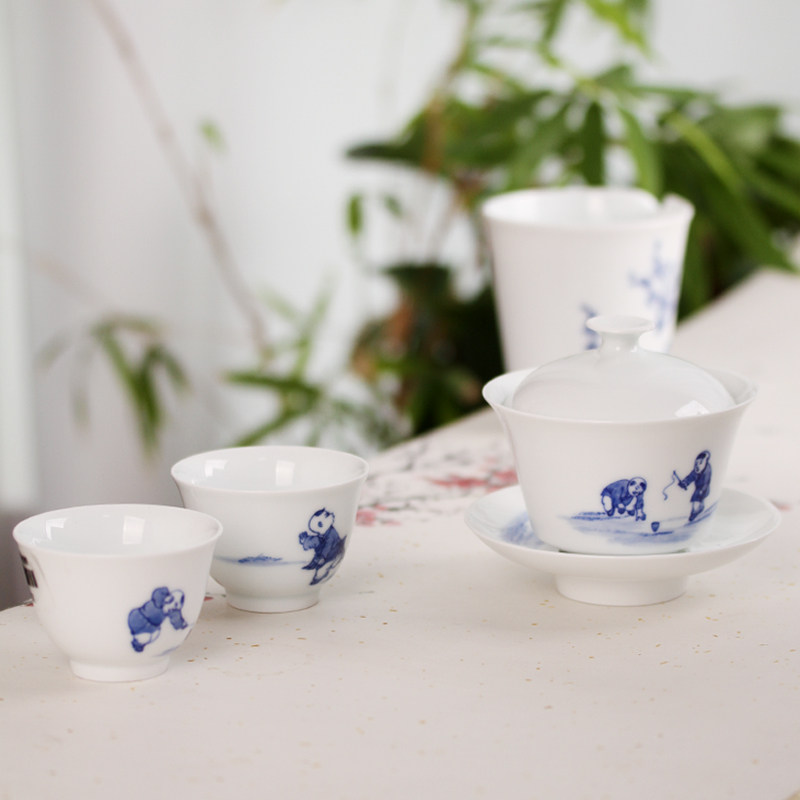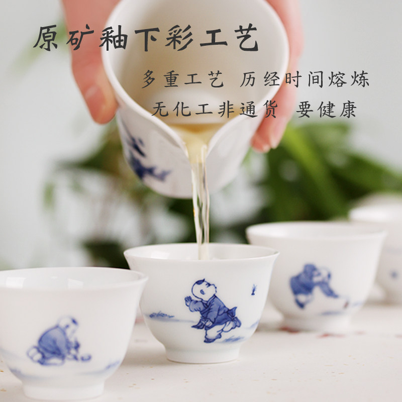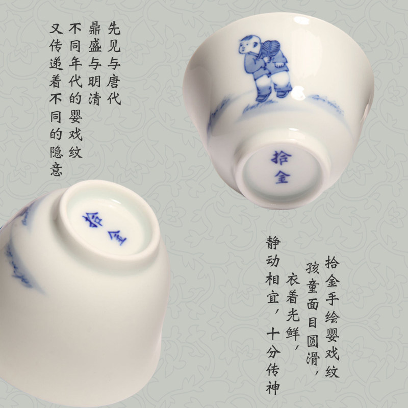 自慢堂拾金款手绘青花瓷婴戏清湛闻杯功夫茶杯个人杯陶瓷茶具