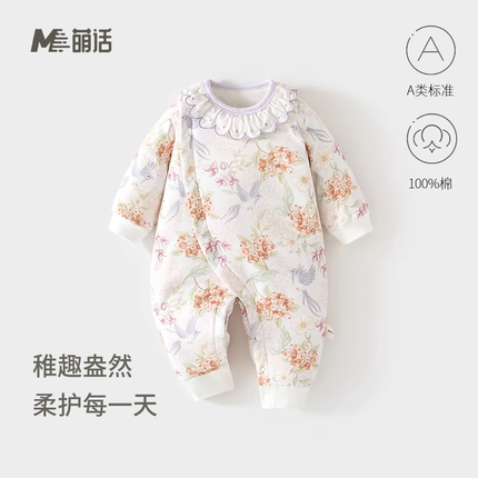 女宝宝婴儿夹棉连体衣秋冬季棉衣棉服60克薄棉纯棉加厚保暖哈衣