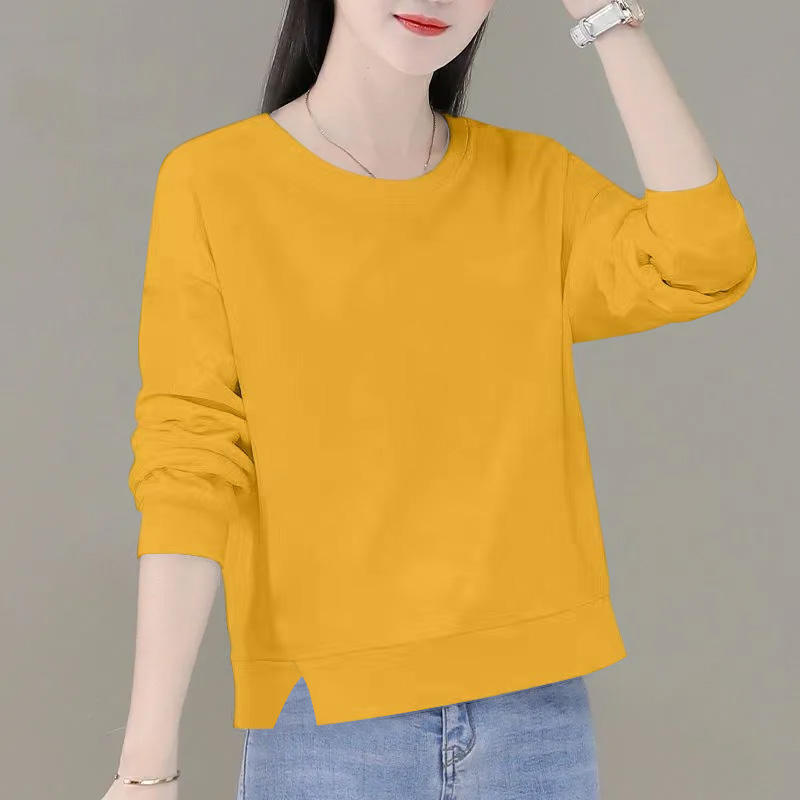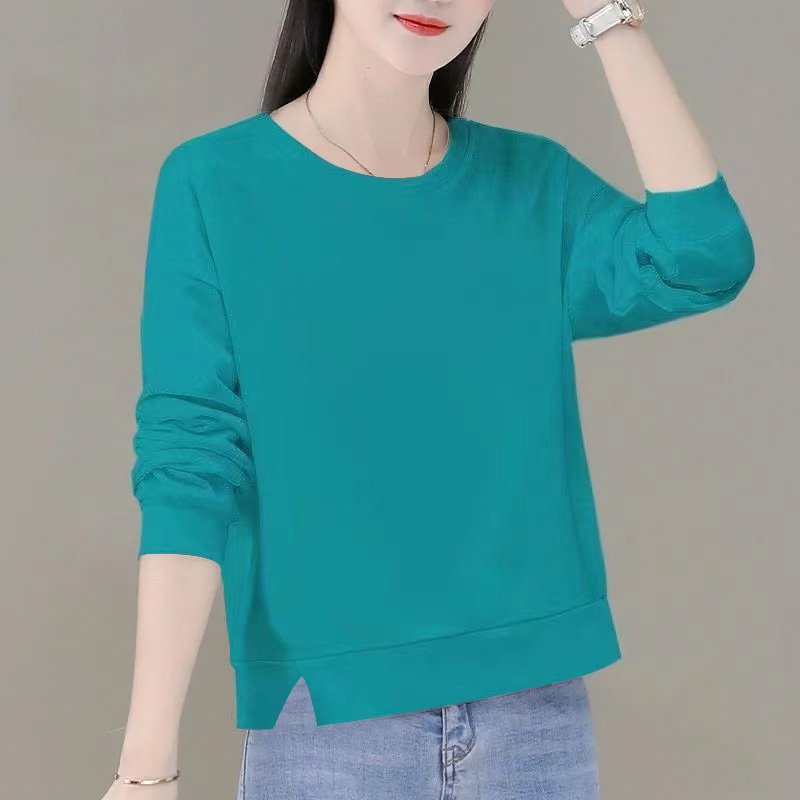 纯棉圆领长袖t恤女春秋季新款韩版大码宽松显瘦百搭洋气减龄上衣