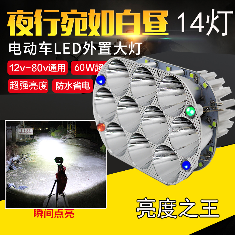 60w内置电动车灯125摩托车led大灯泡高亮射灯流氓灯远近光12v灯泡