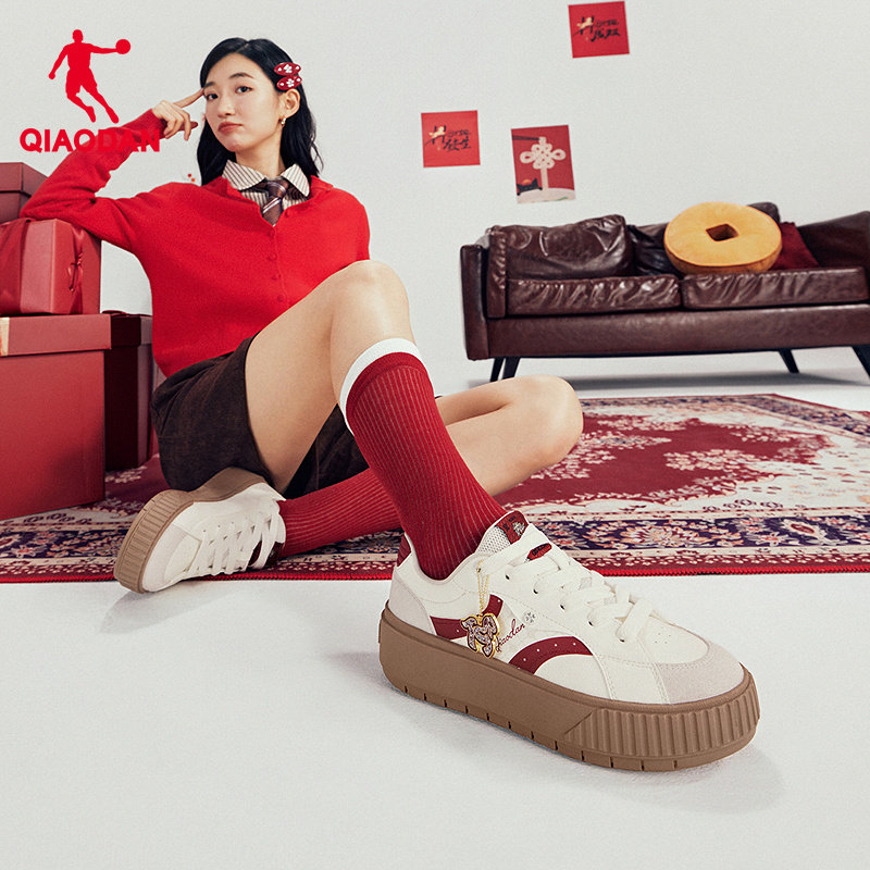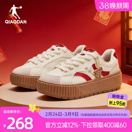 松饼|乔丹红色T头鞋厚底德训鞋女板鞋商场同款2026年春季款运动鞋