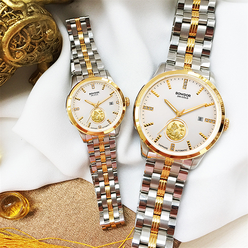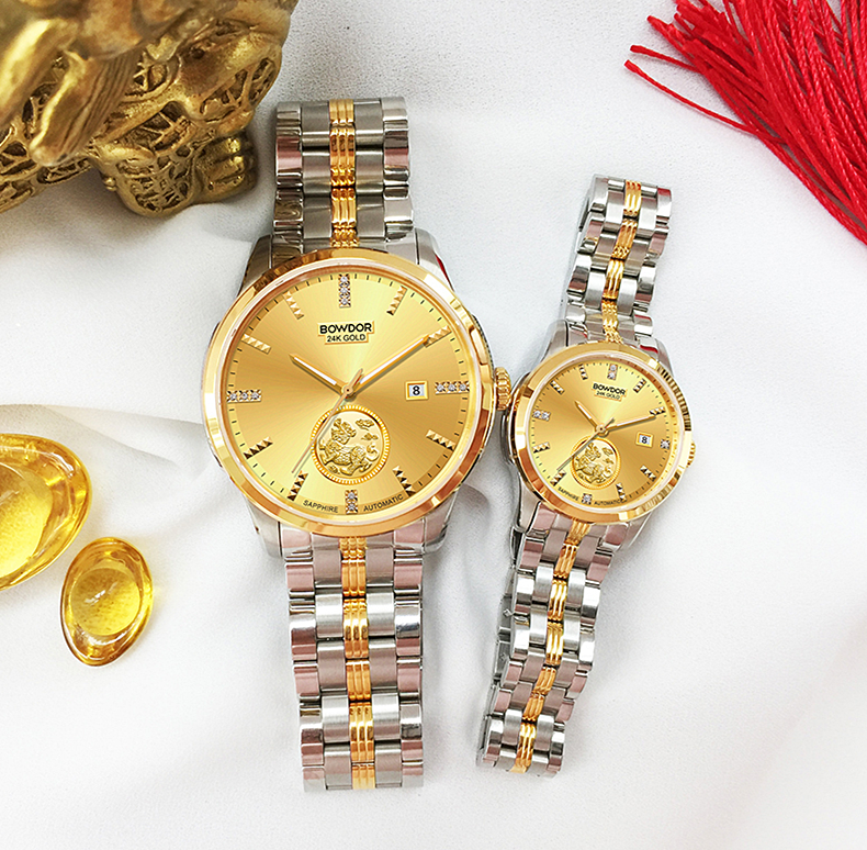 宝舵BOWDOR传世貔貅系列24K金情侣手表商务防水男表时尚女表GG003