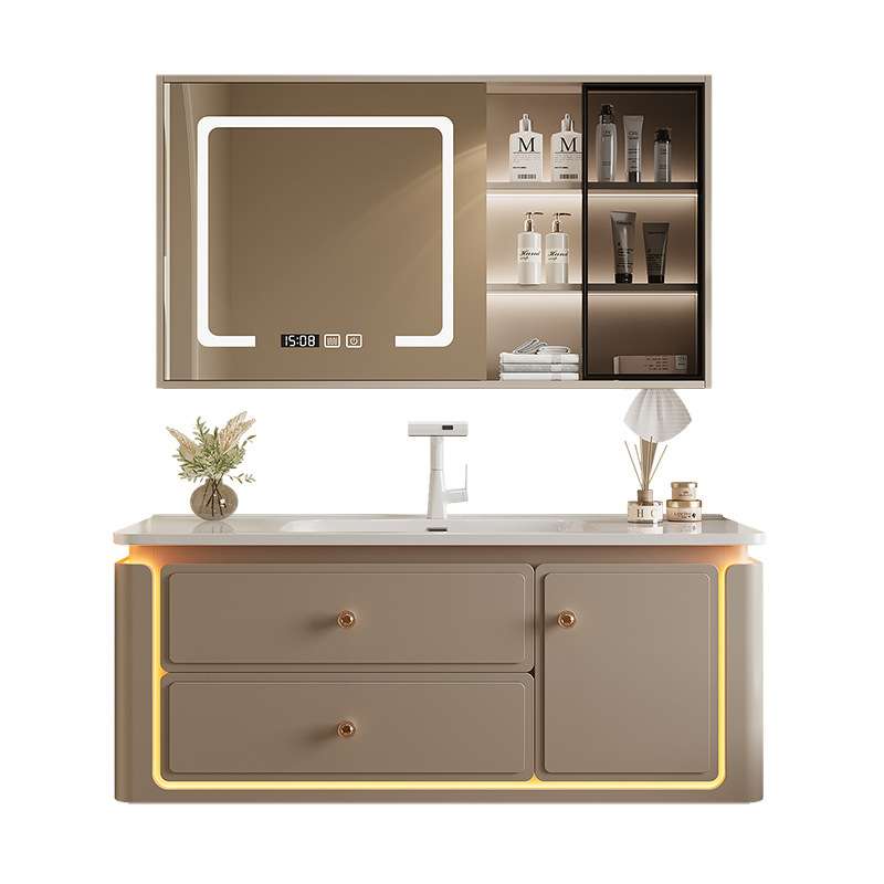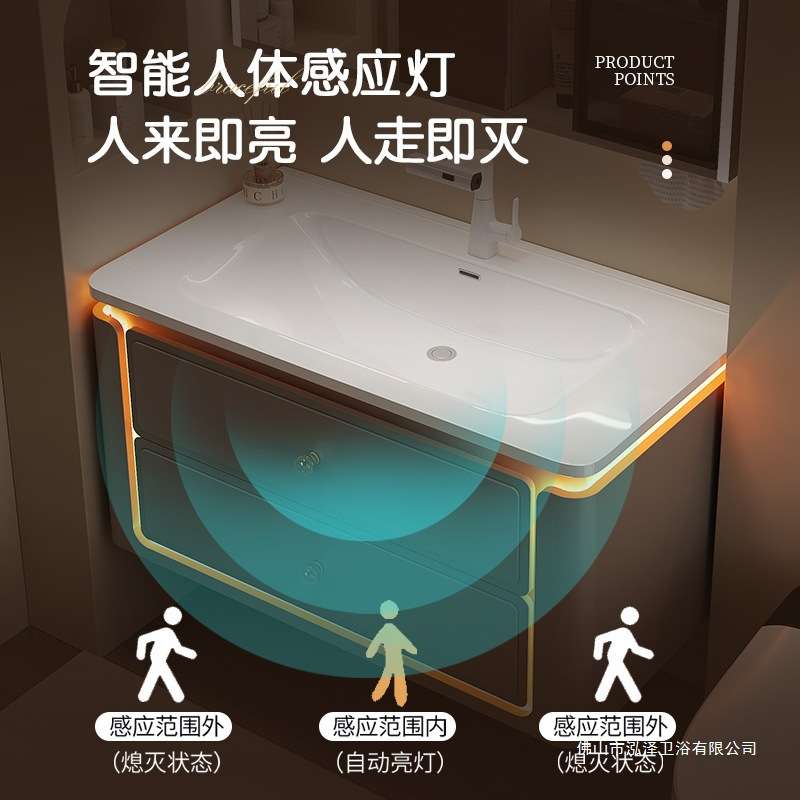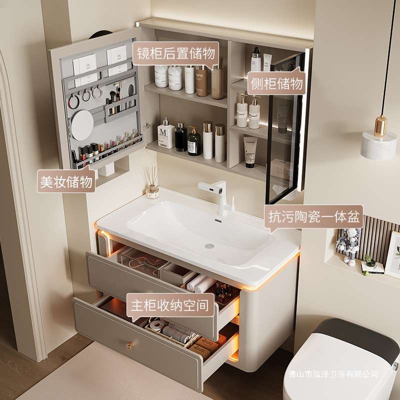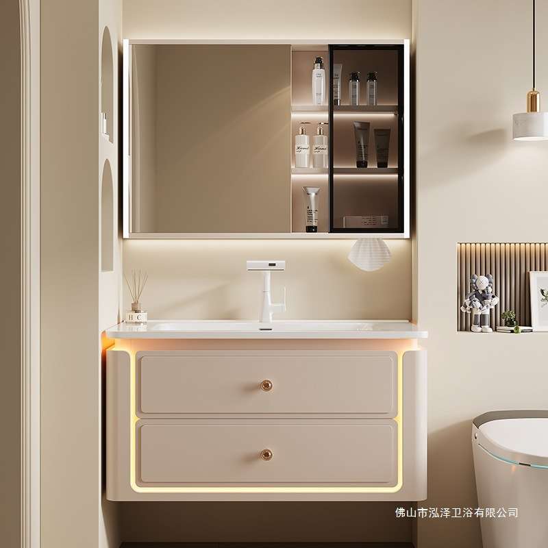 法式简约奶油风实木浴室柜组合陶瓷一体洗手脸池台盆卫生间洗漱台