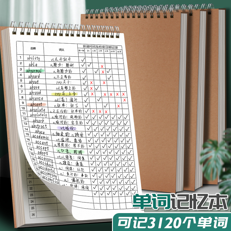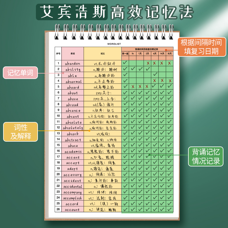 英语单词本艾宾浩斯记忆本大学生四六级背考研默写记背神奇生词纸笔记本记忆本便携专升本词汇初中高中英语本