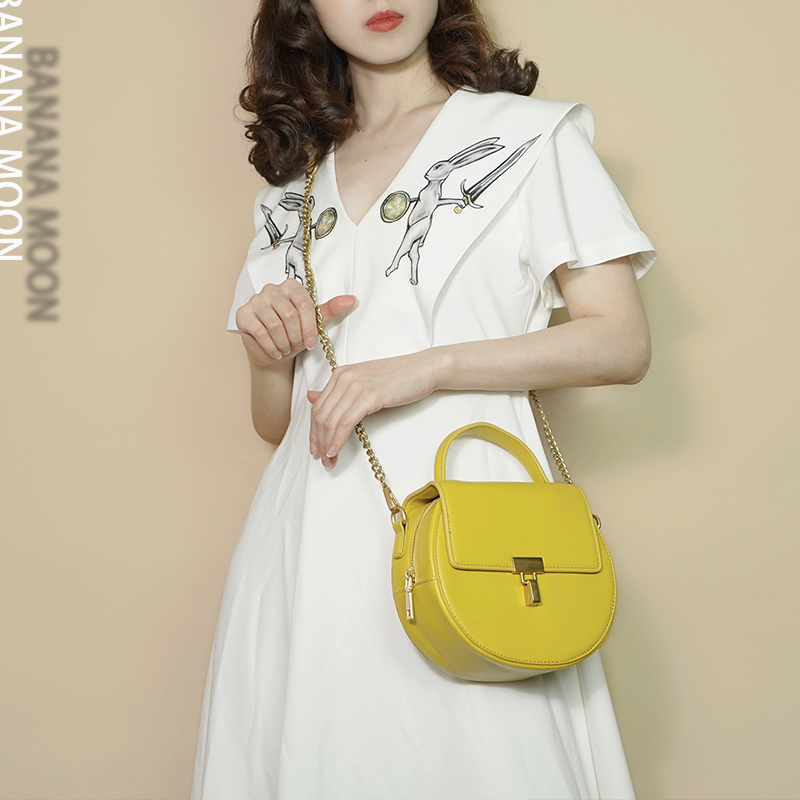 五折清仓/黄亦玫复古法式单肩手提斜挎黄色马鞍包女新款