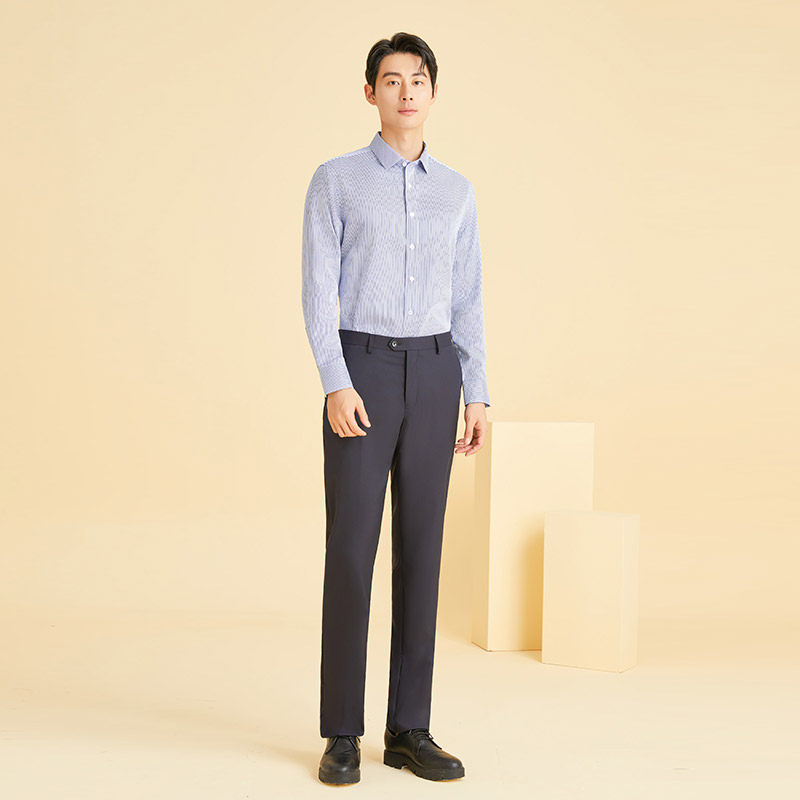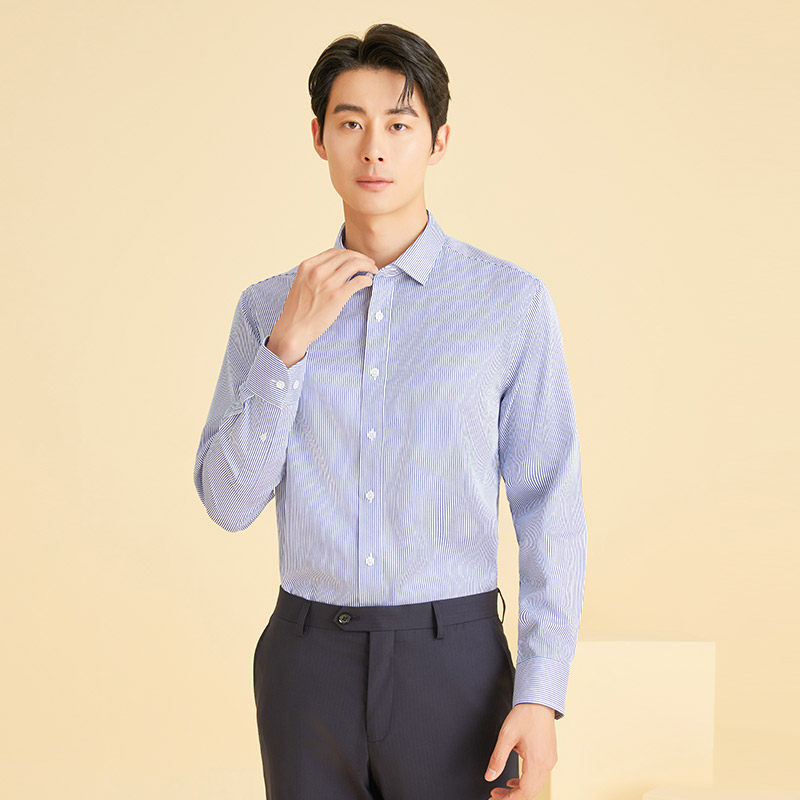 【免烫】乔治白春秋季男士长袖衬衫商务纯棉衬衣条纹职业上衣