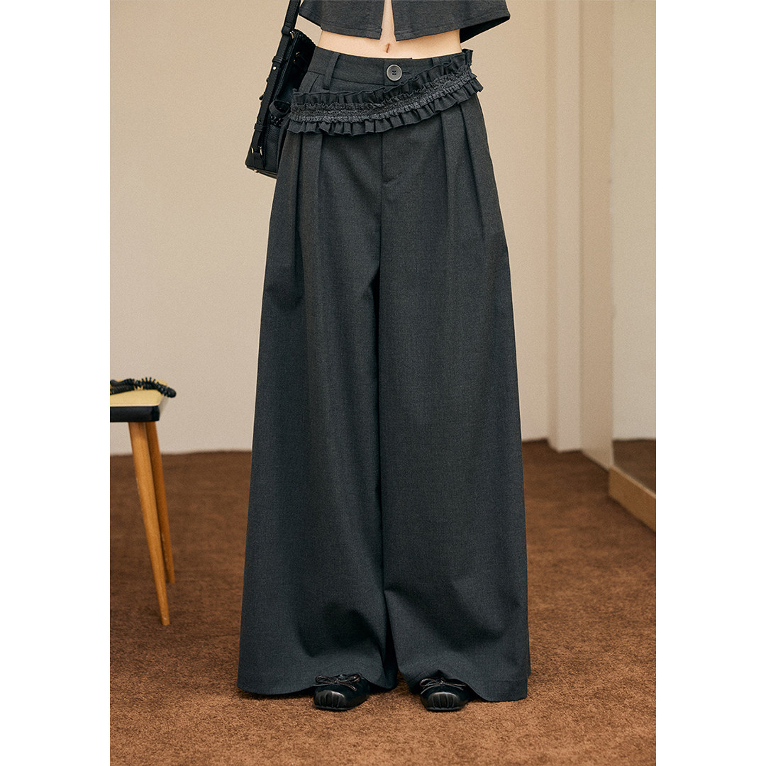 宽松花边垂感灰色西装裤