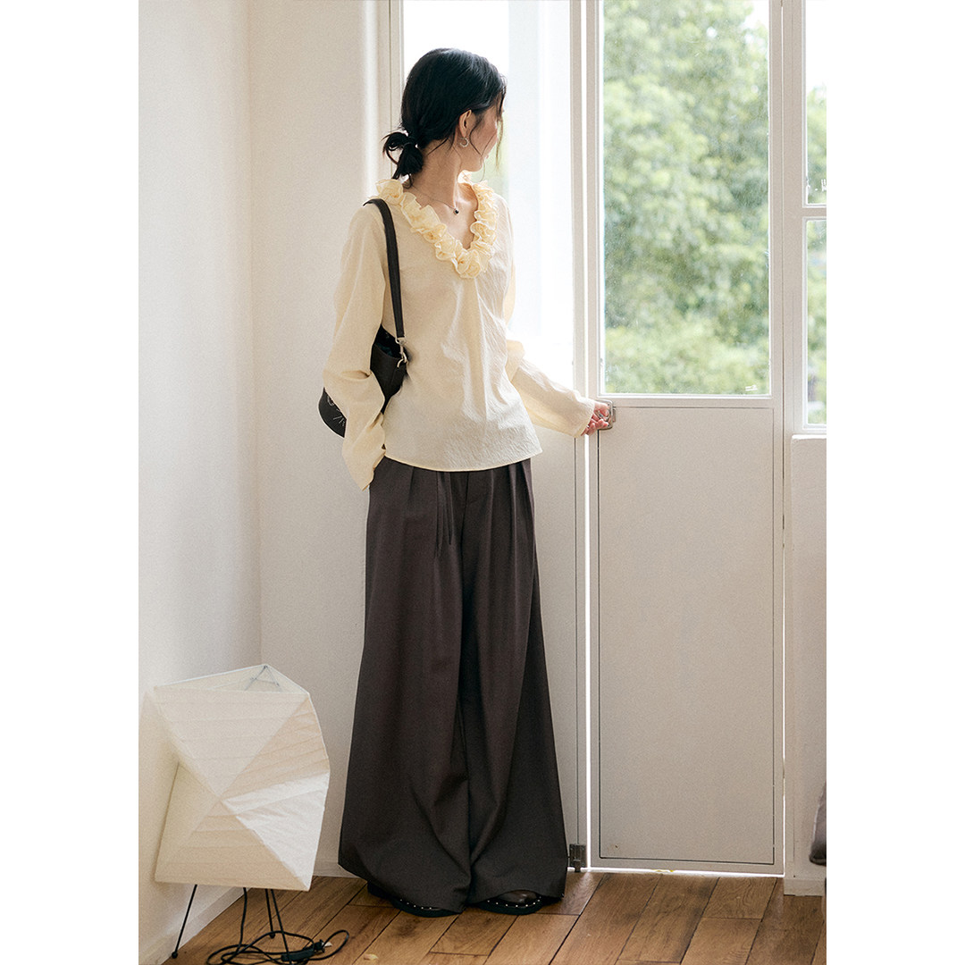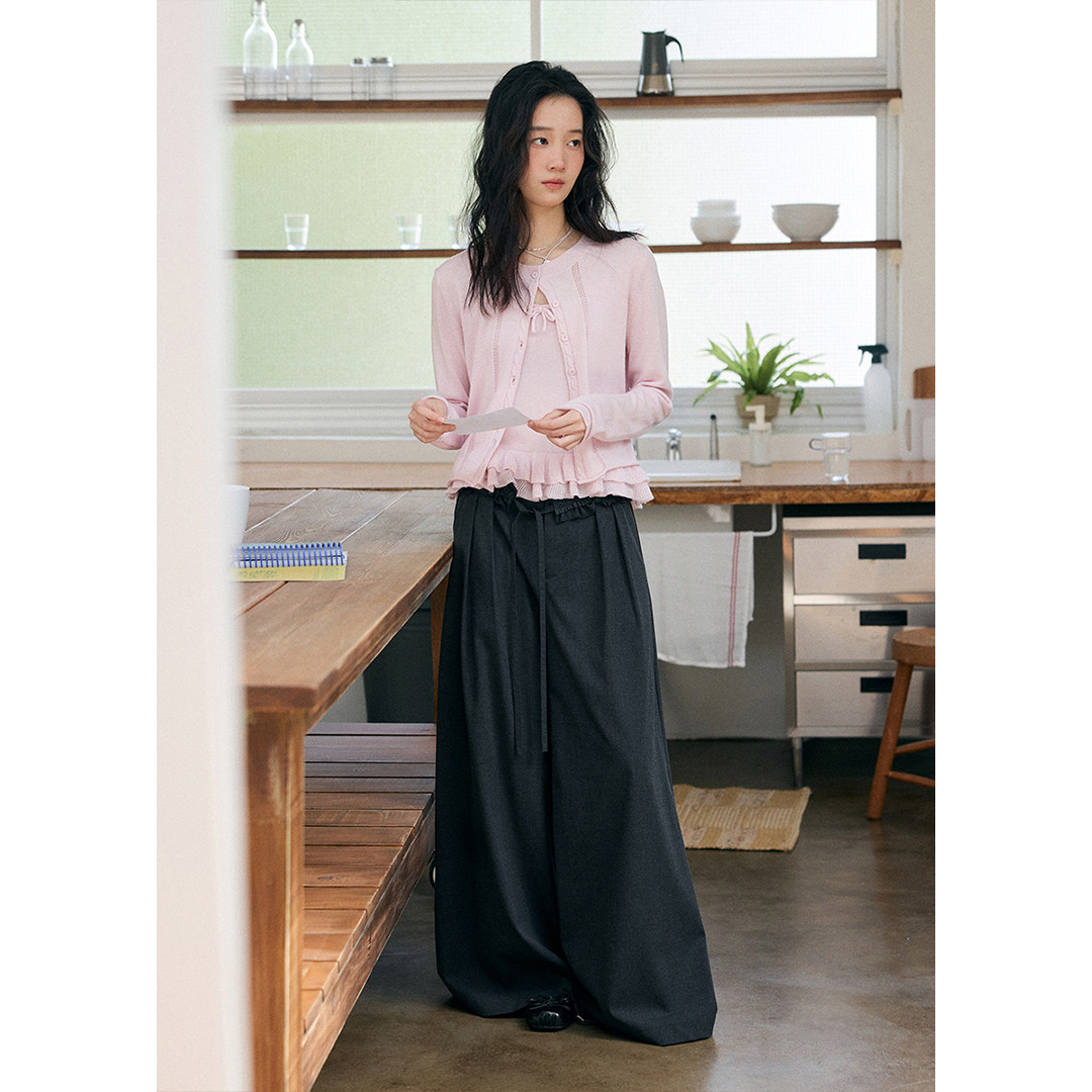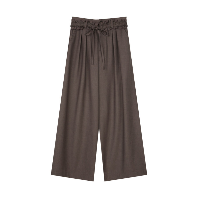 BLUEerror 宽松花边腰带垂感灰色西装裤女法式阔腿裤休闲裤子秋季