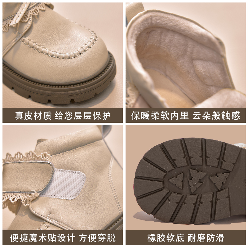 女童靴子儿童真皮公主短靴2025新款冬季小女孩加绒宝宝保暖二棉鞋