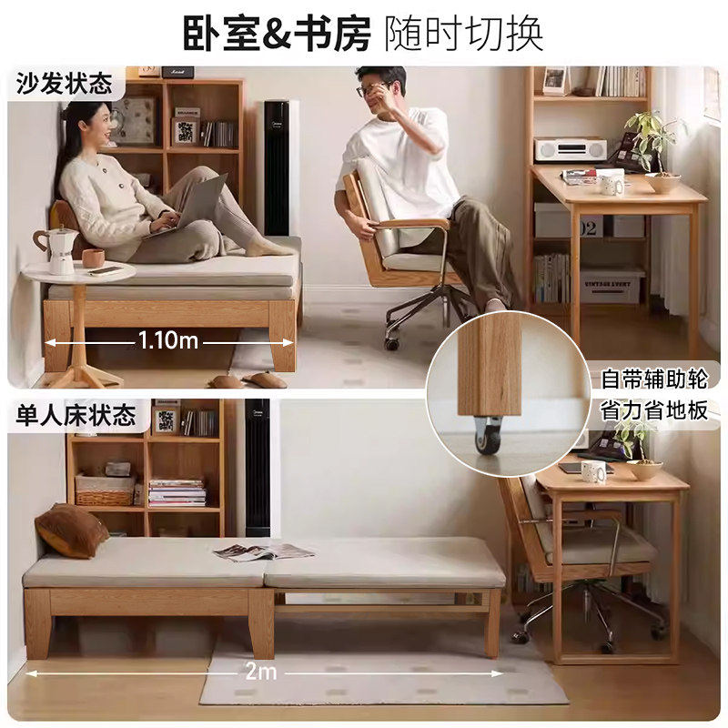 实木沙发床多功能折叠两用2025新款客厅抽拉双人红橡木小户型拉床