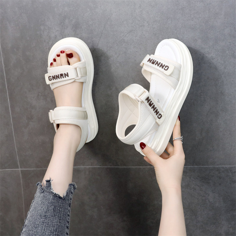 小香风2025年夏季女款舒适凉拖魔术贴潮流沙滩运动凉鞋外穿大码42