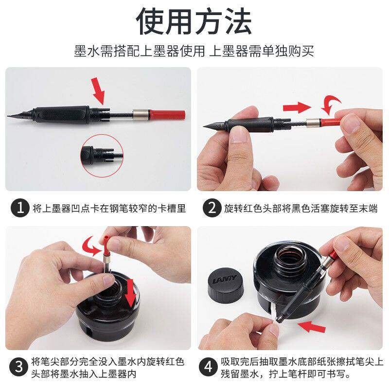 德国正品lamy/凌美非碳素墨水钢笔用T52黑色蓝黑色蓝色红墨水50ml
