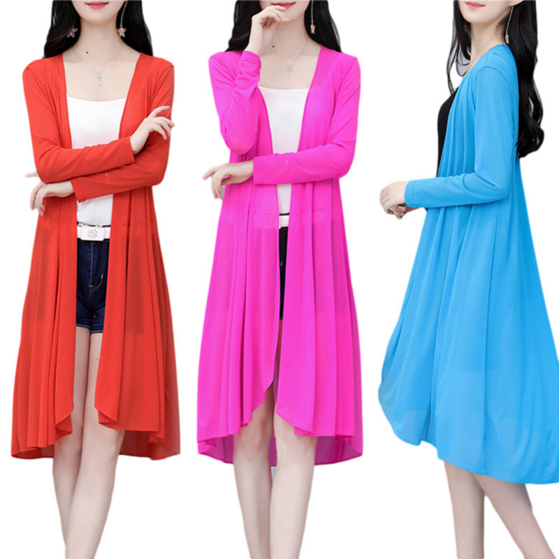 春夏空调衫防晒衣薄开衫外搭女中长款网纱衣外披肩薄外套披风外衣