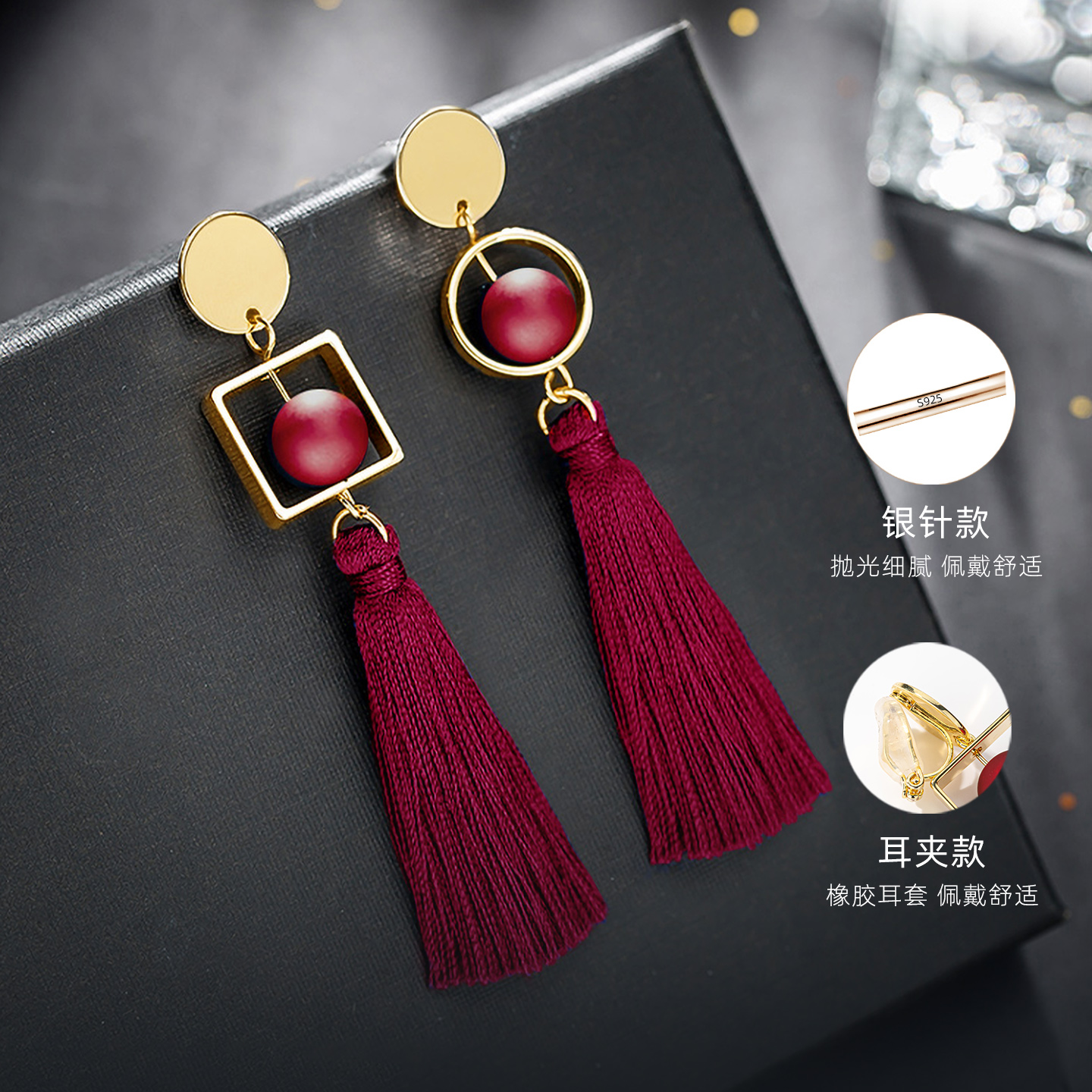红色流苏耳环2025新款爆款高级感秋冬国风新中式耳饰女耳夹长耳坠