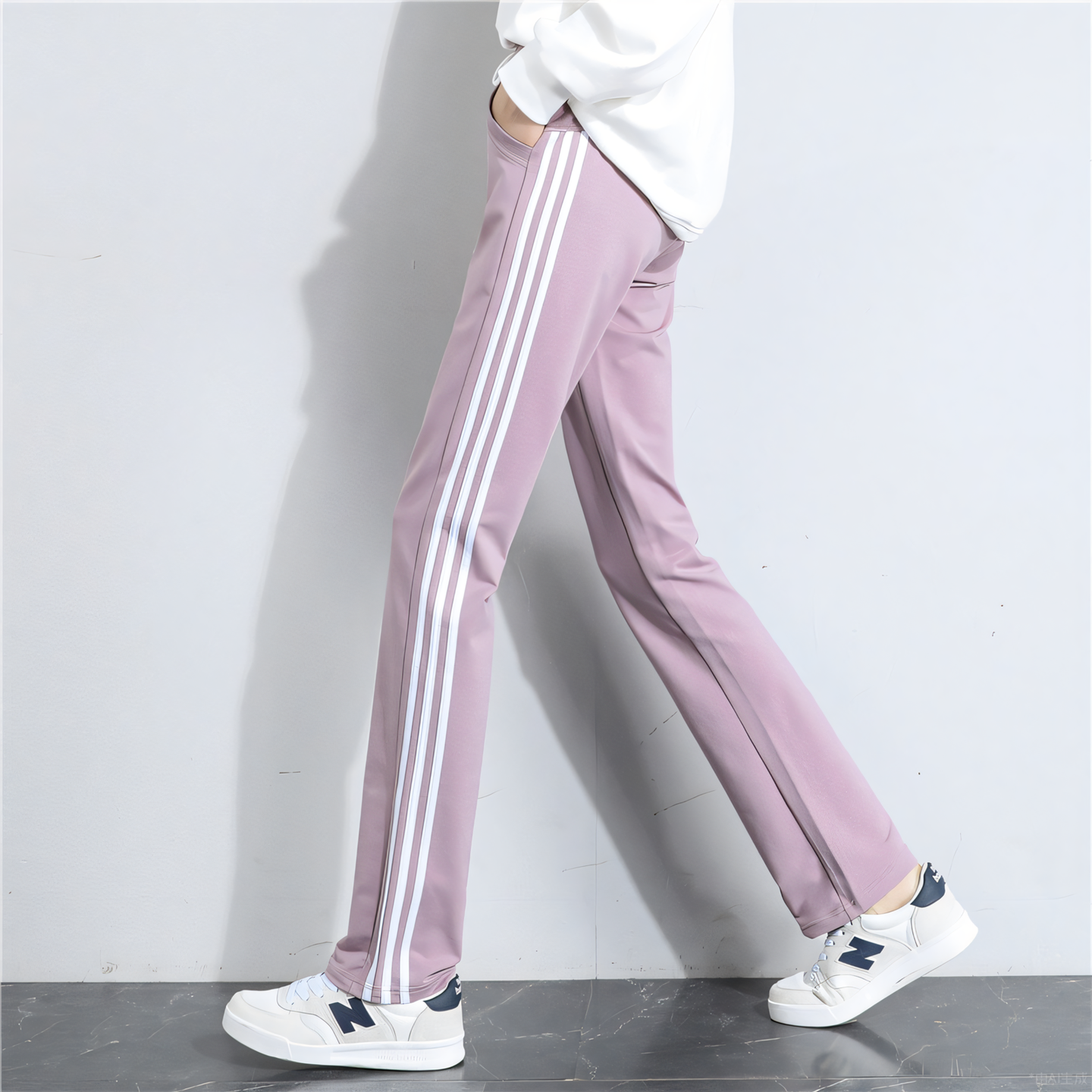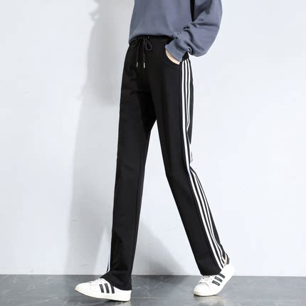 三条杠运动裤女春秋冬季加绒直筒长裤子高中初中学生纯棉休闲卫裤