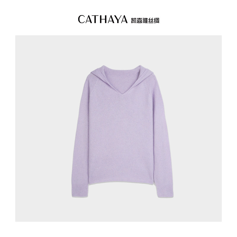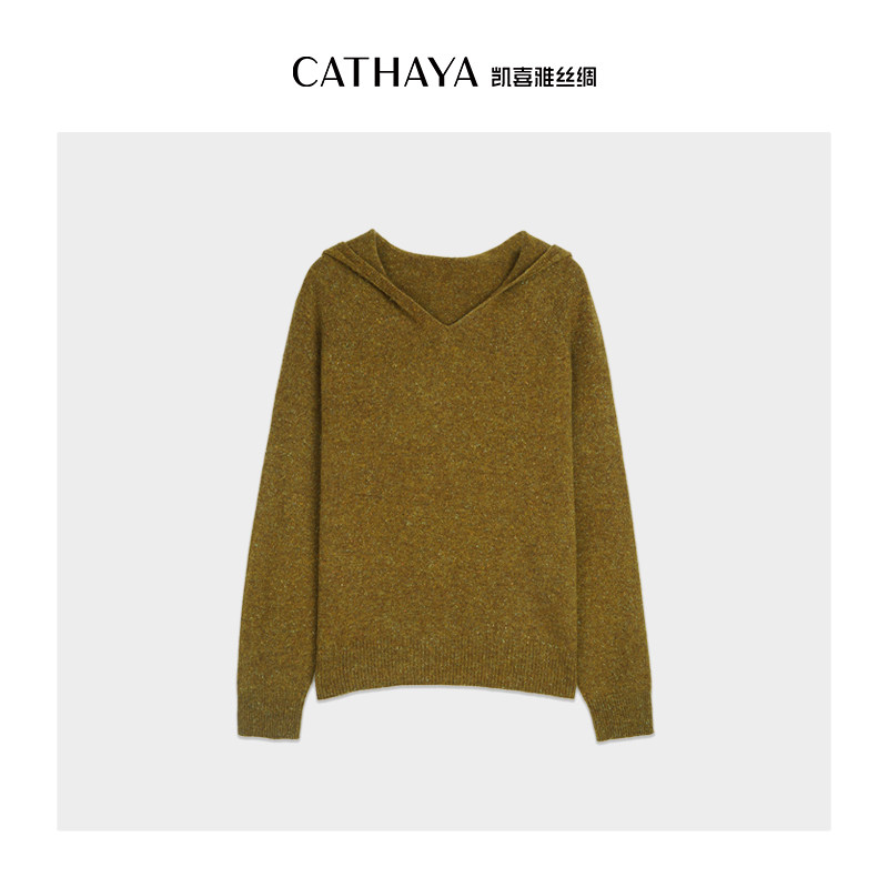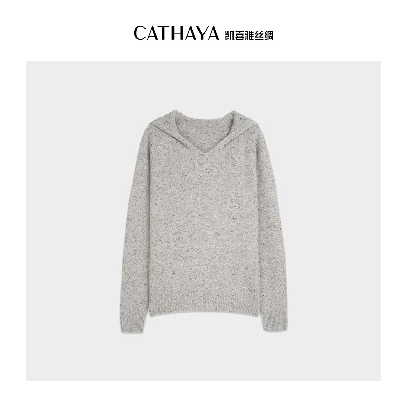 CATHAYA/凯喜雅点子纱帽衫毛衣长袖羊毛针织百搭连帽CGK2FEJLB63