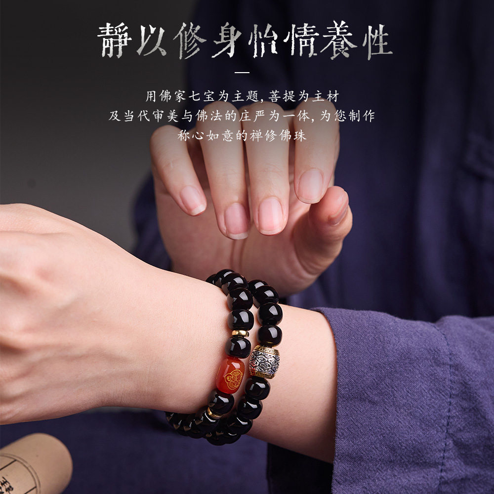 【真菩提】十二生肖溏心老料菩提根手串男女双圈菩提盘玩念珠手链