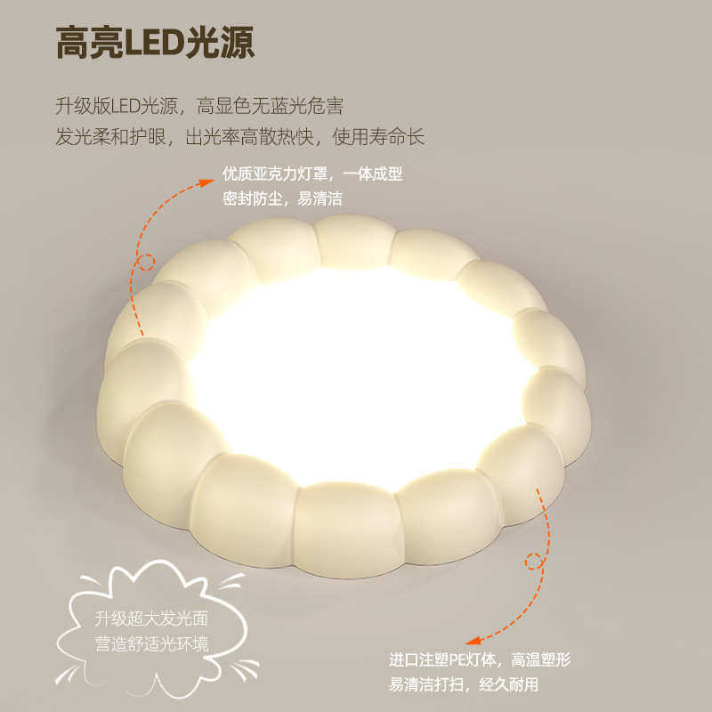 卧室灯吸顶灯现代简约灯具北欧极简智能奶油风主卧灯餐厅儿童房灯