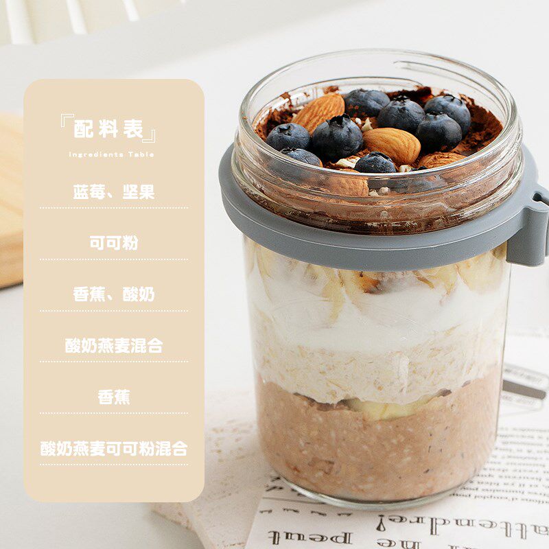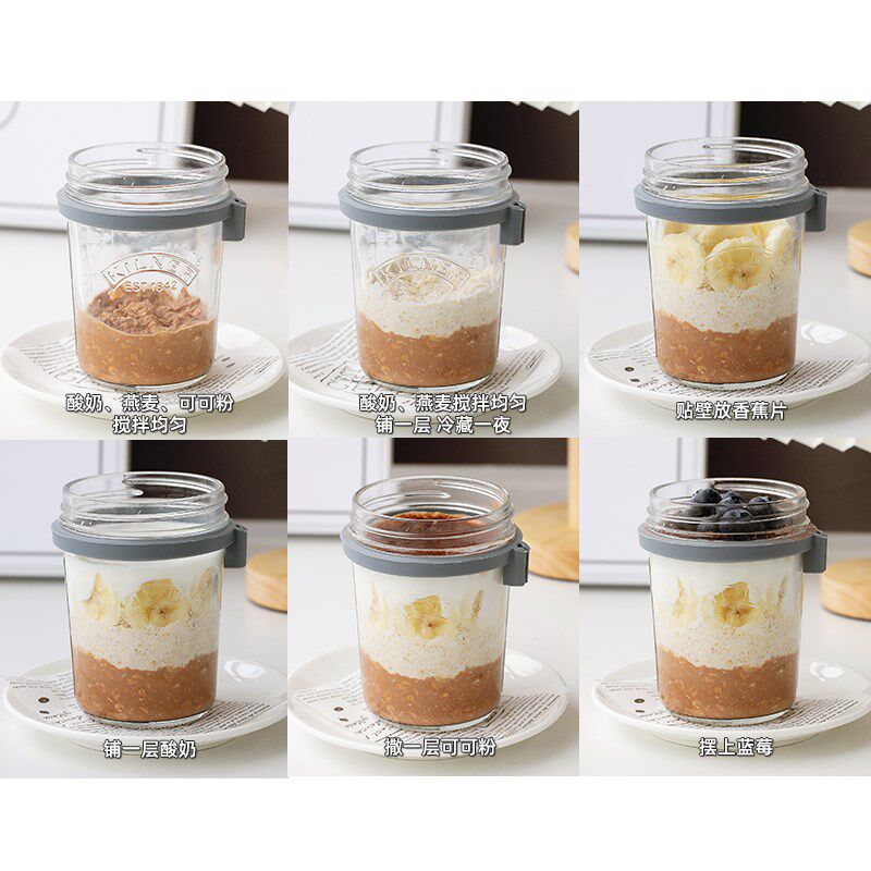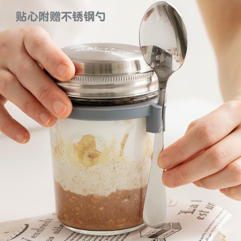 帕梅拉燕麦杯kilner刻度轻食杯便携玻璃酸奶杯隔夜早餐杯带盖勺