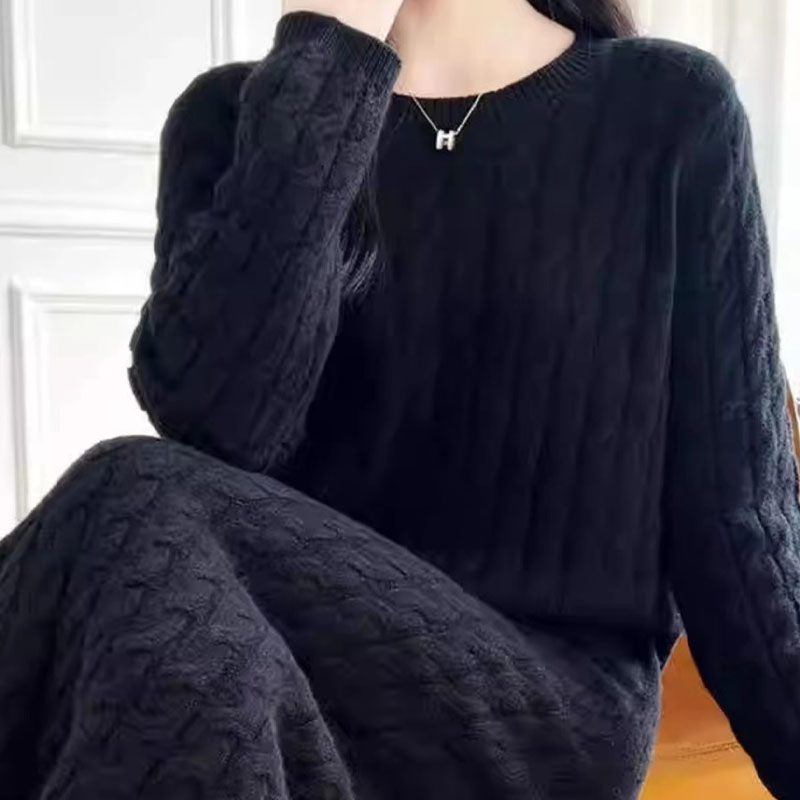 秋冬装长款过膝羊绒衫纯色内搭女圆领毛衣裙百搭针织连衣裙子长袖