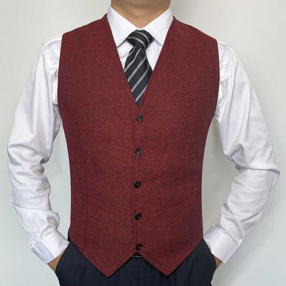 男士商务办公人字纹伴郎背心修身