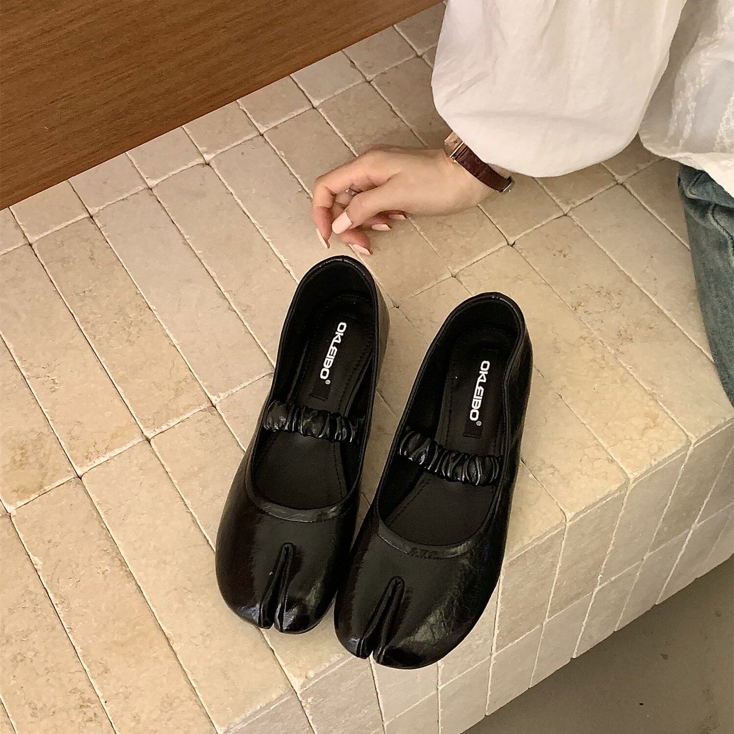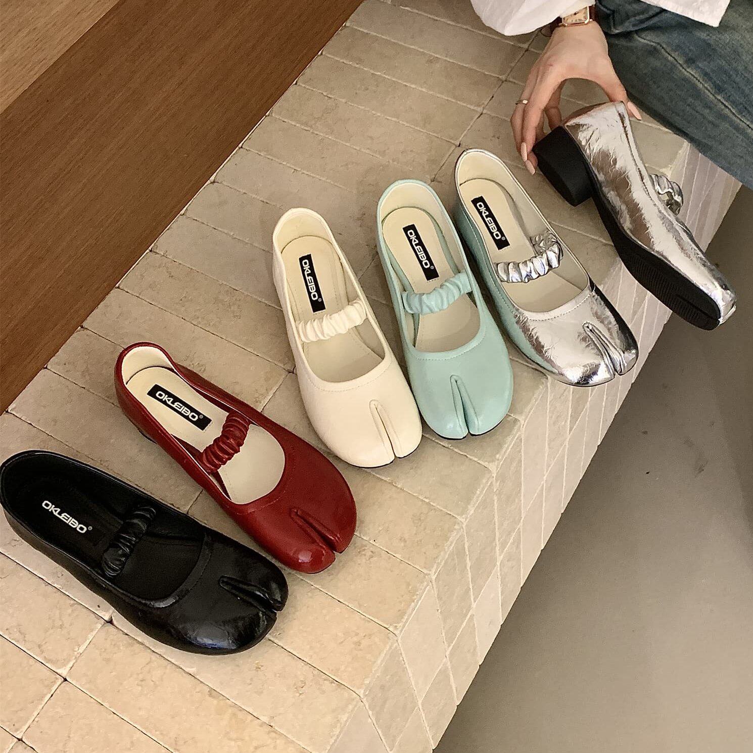 复古风分趾猪蹄鞋真皮玛丽