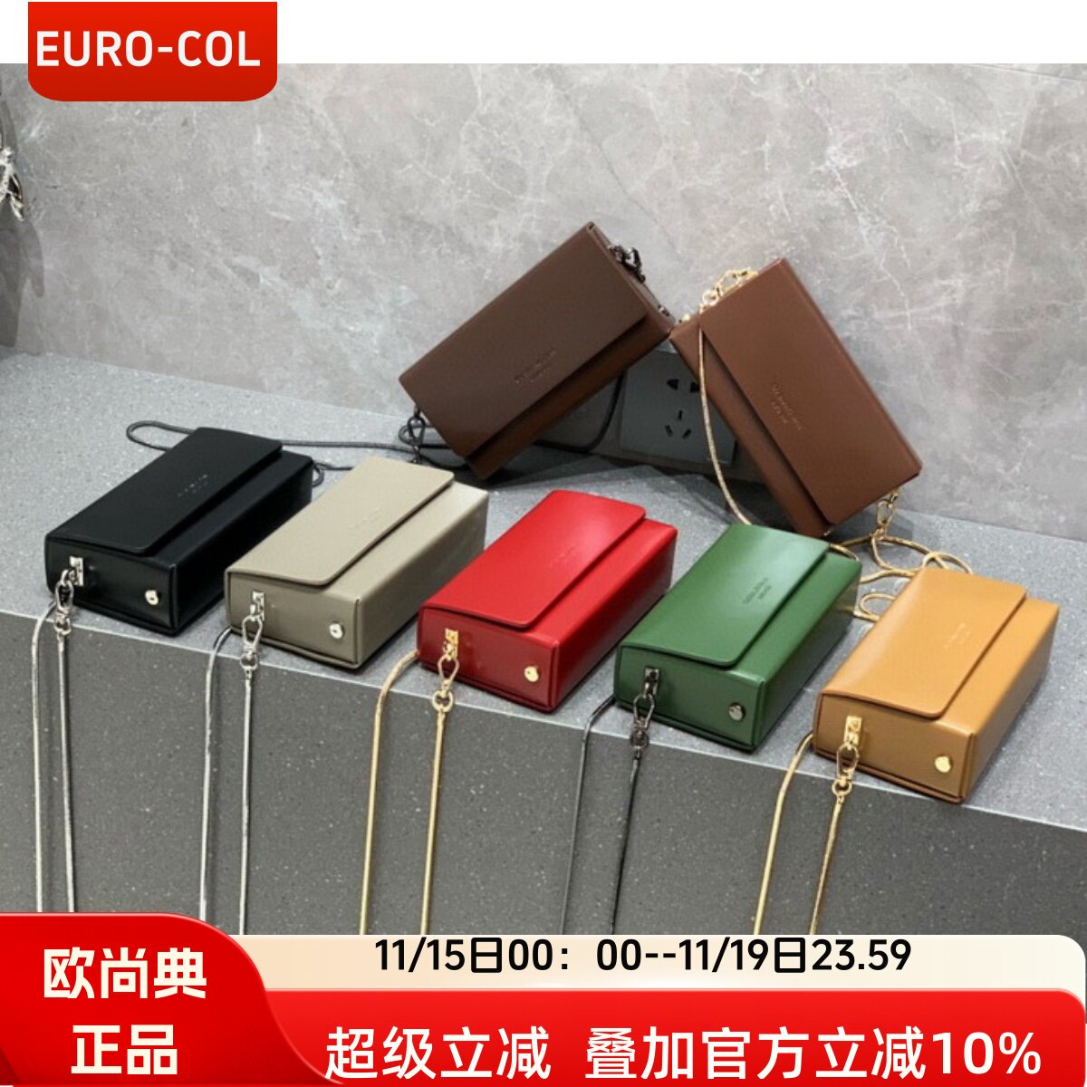 欧尚典小众设计牛皮小方包女白色真皮女包高级感方形斜挎链条包包