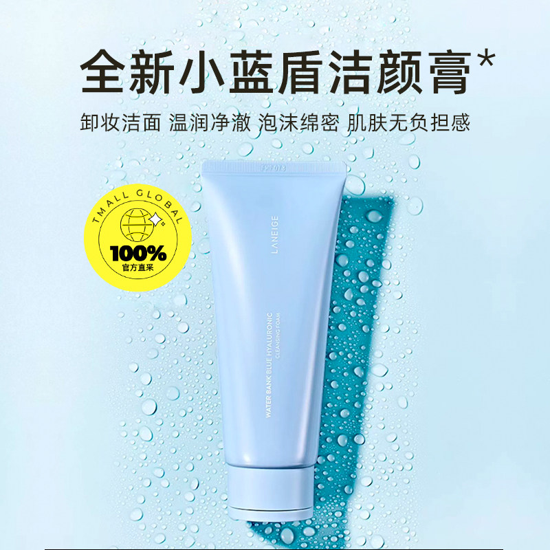 【自营】兰芝洗面奶新水酷透明质酸嘭润洁颜膏小蓝盾卸妆洁面150g