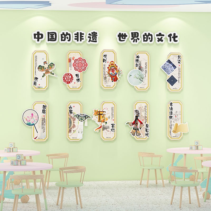 幼儿园环创主题墙成品泡沫板材料教室走廊楼梯中国风文化墙面装饰