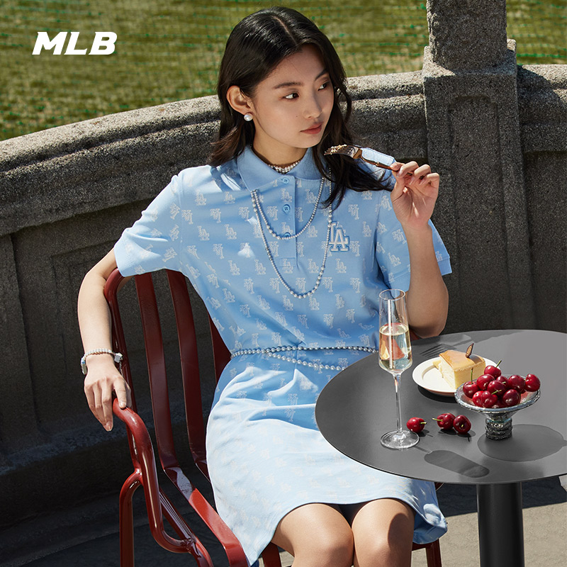 MLB官方 女款满印老花POLO领直筒运动连衣裙OPM01