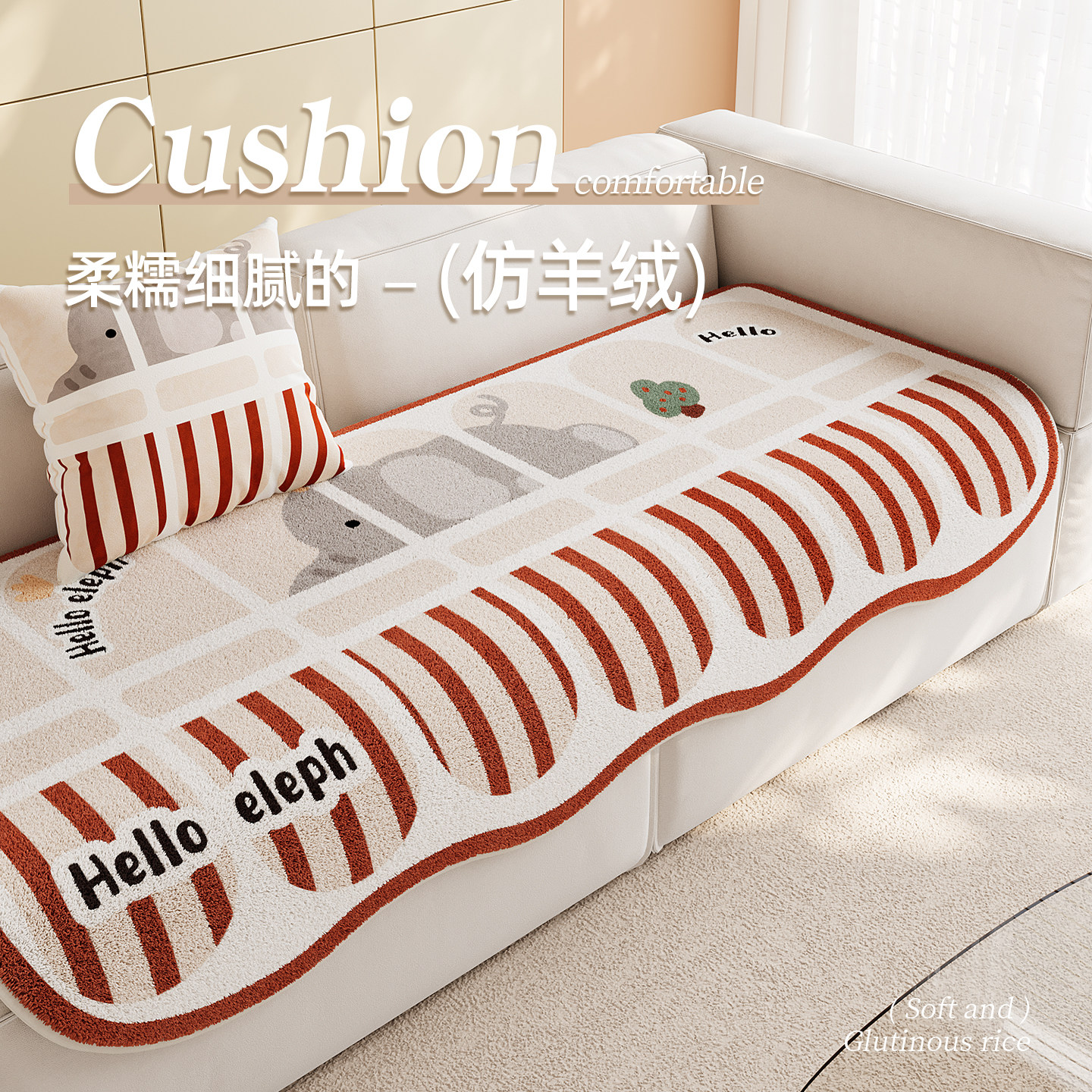 卡通沙发垫新款加厚毛绒四季通用直排皮座垫防滑坐垫子扶手靠背巾