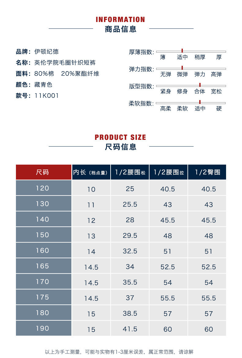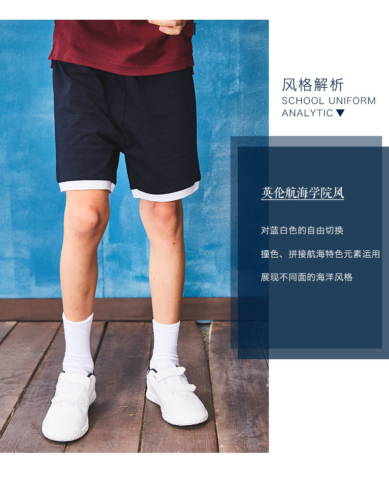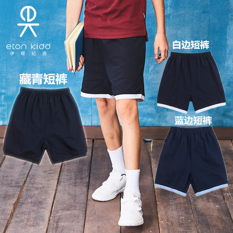 伊顿纪德男女童藏青白边蓝边运动针织短裤中大童运动裤夏季10y018