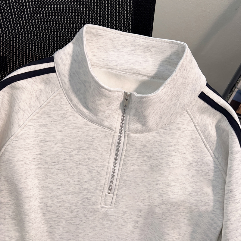 大码300斤三条杠立领卫衣男士2025春秋季新款宽松半拉链外套上衣