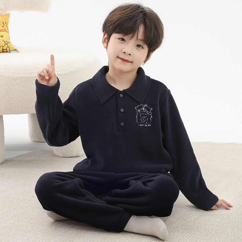 儿童睡衣男童法兰绒家居服秋冬款中大童奥粒绒加绒加厚保暖衣套装