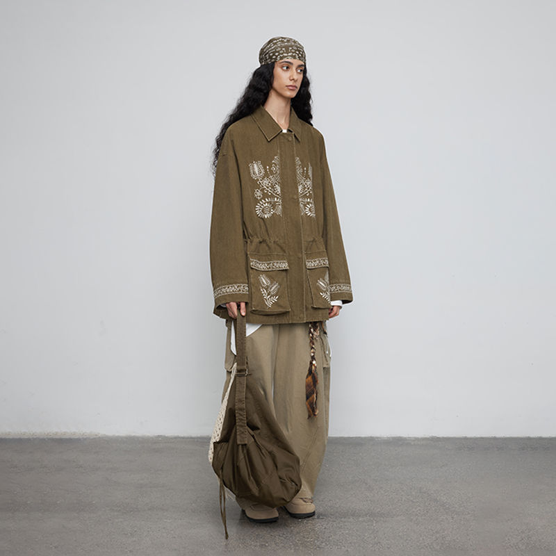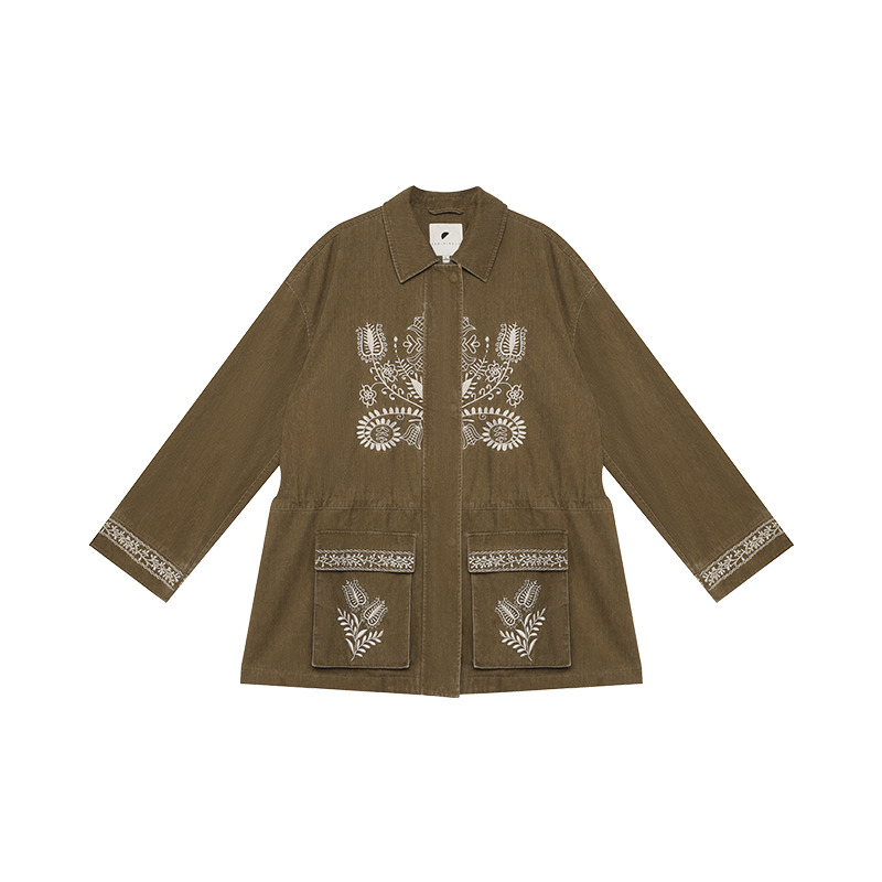 纯棉 半圆女装[复古2025秋季宽松休闲老钱风穿搭绣花衬衫式外套女