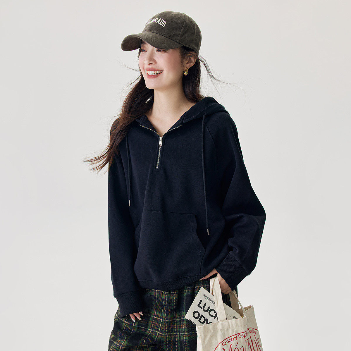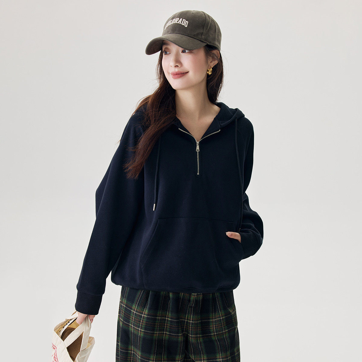 茵曼2025冬季新款加绒加厚保暖长袖卫衣外套女连帽宽松显瘦百搭