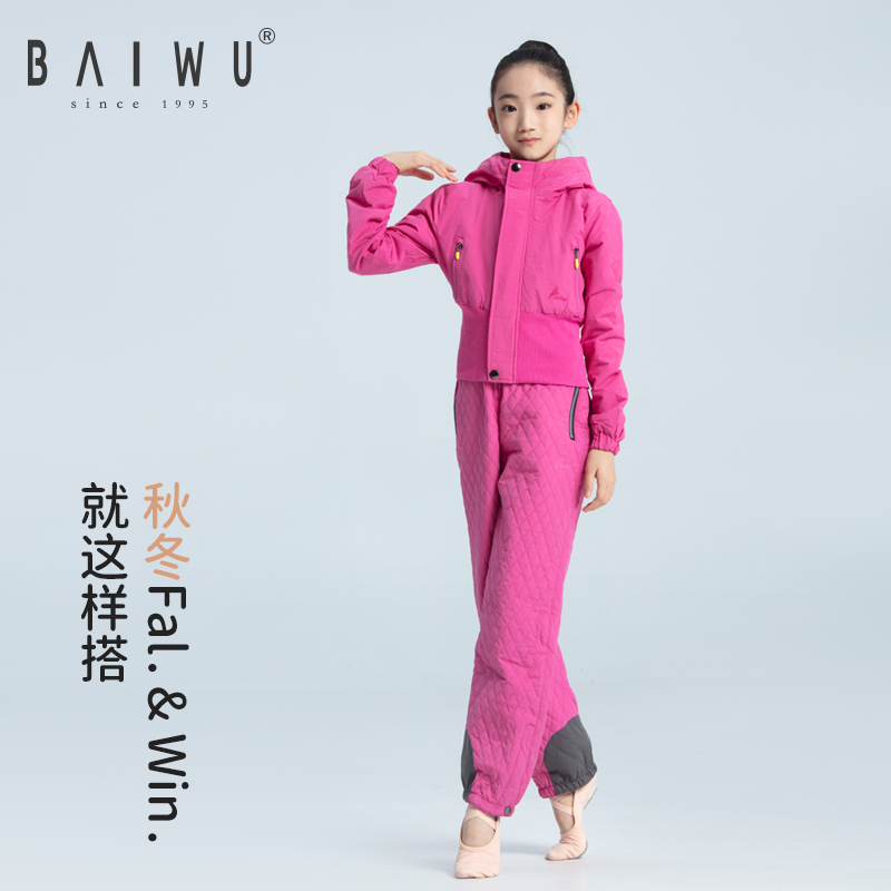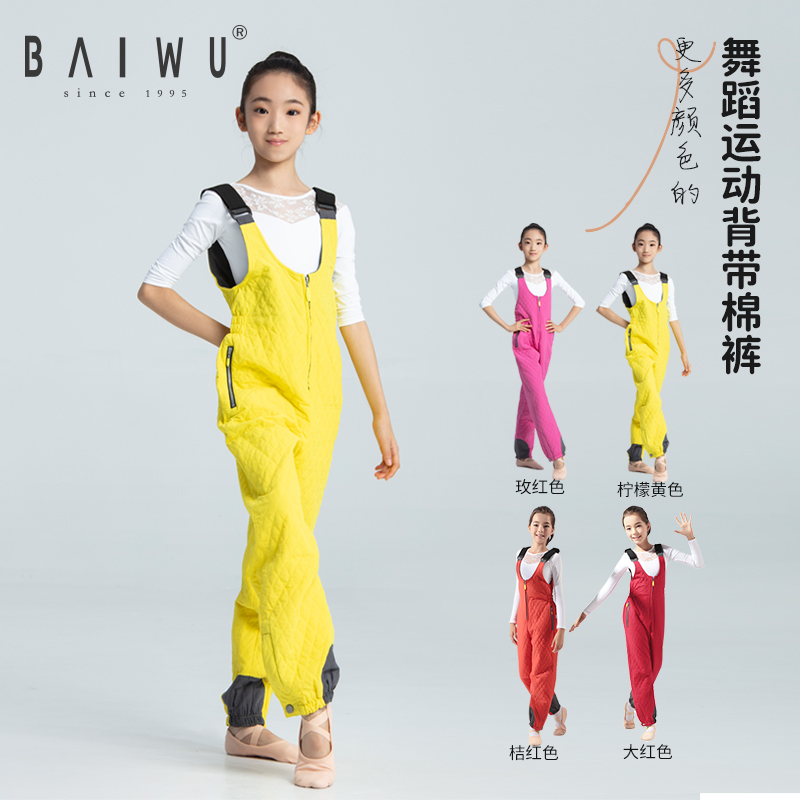 柏屋舞苑儿童舞蹈背带棉裤女童芭蕾练功长裤防寒服116217002