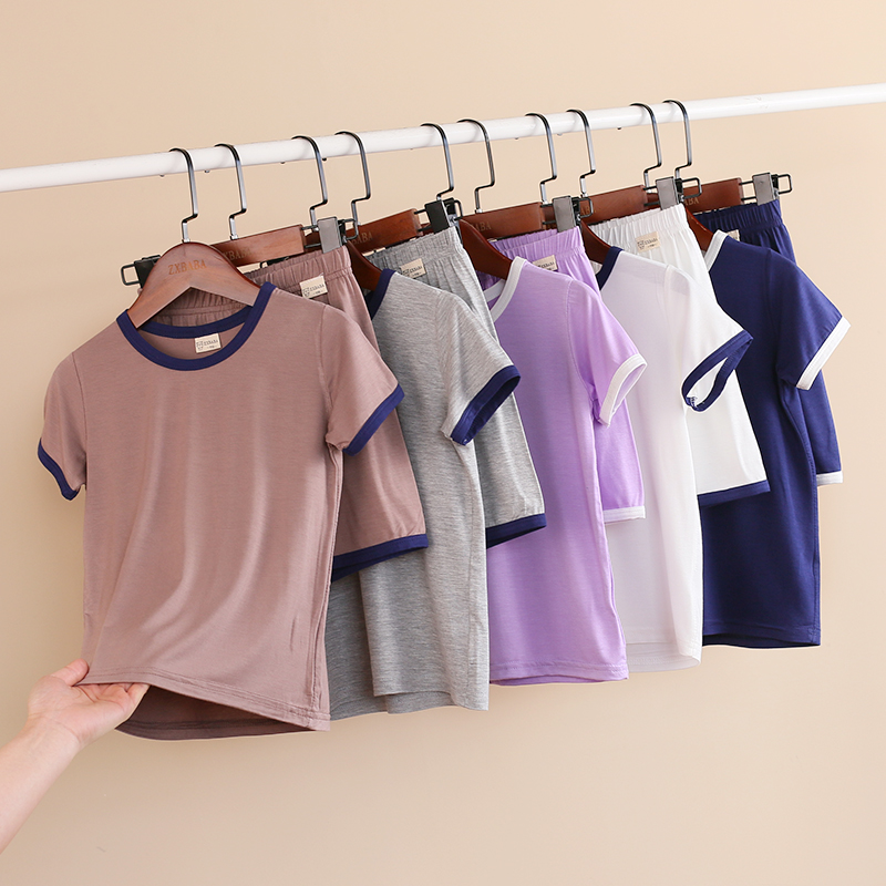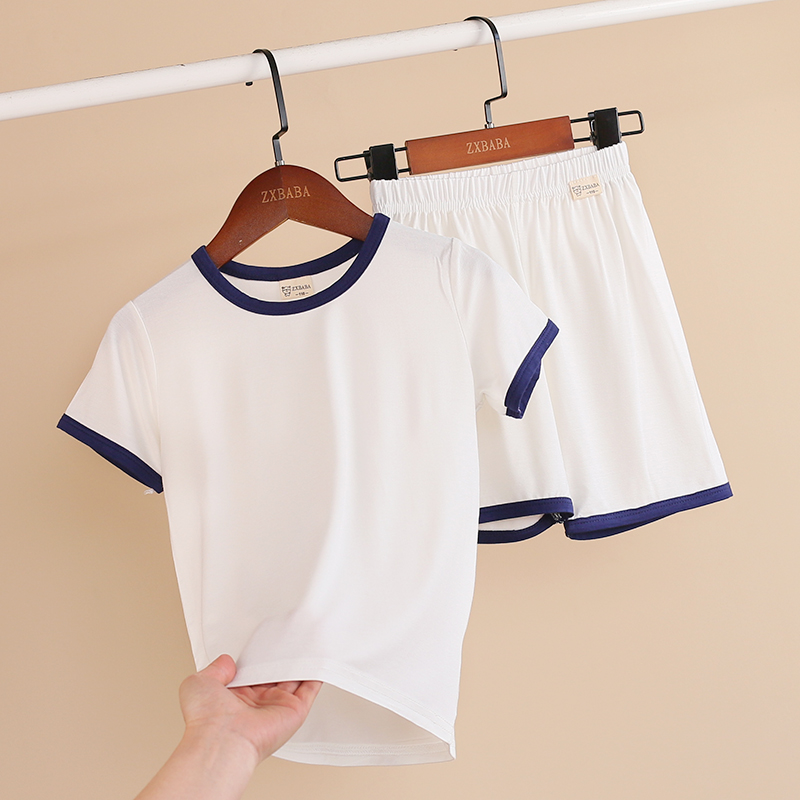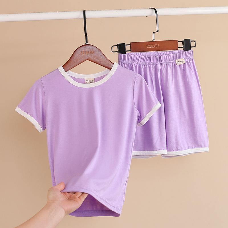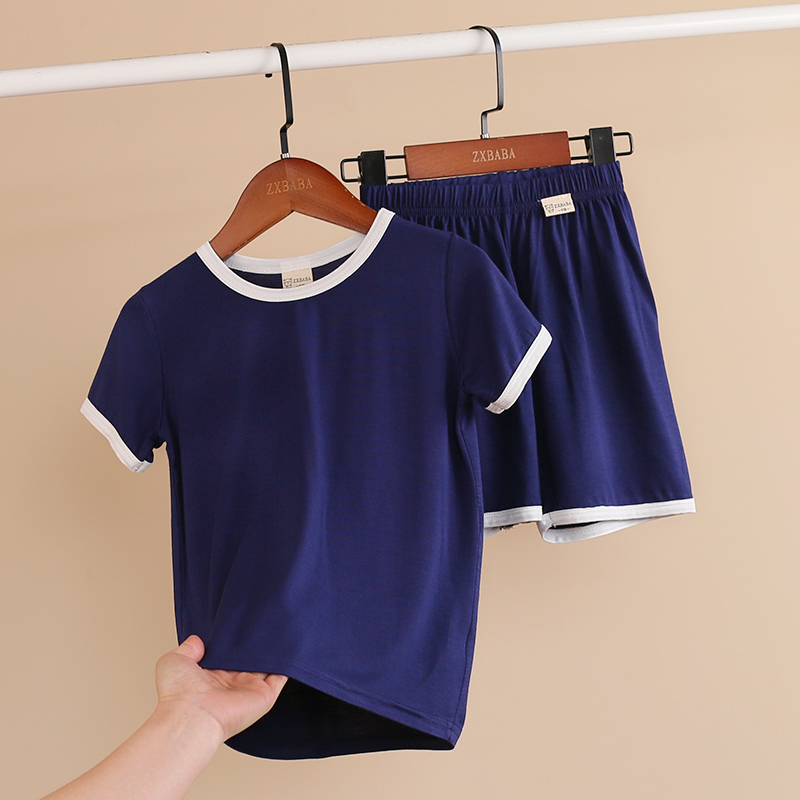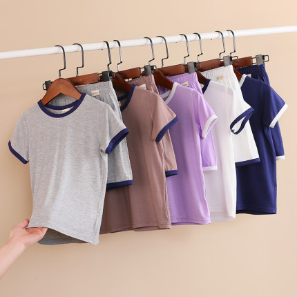 儿童薄短袖T恤短裤家居服莫代尔夏款男童半袖打底裤女童睡衣套装
