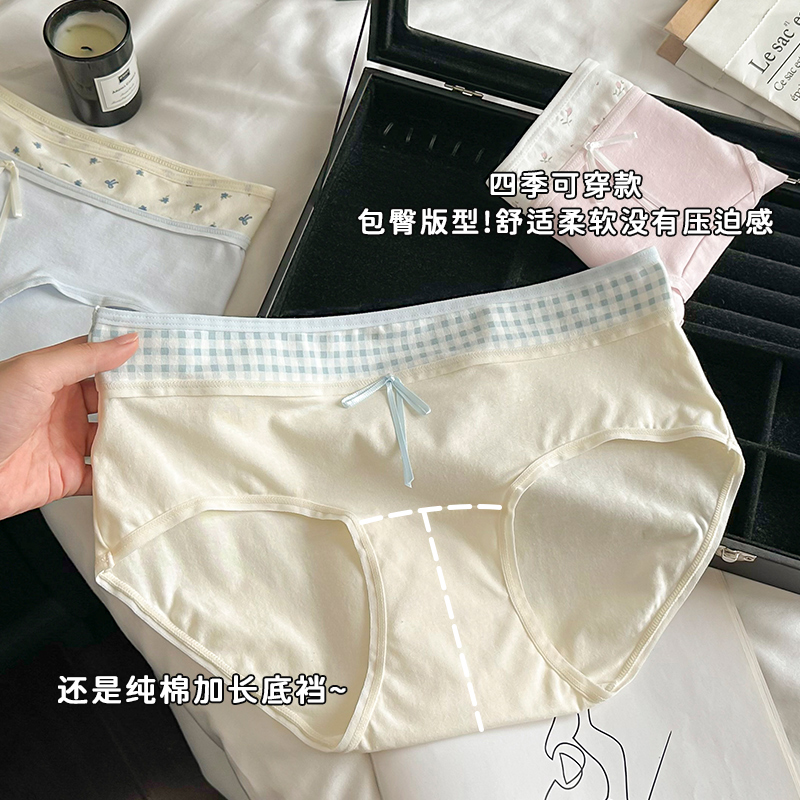甜美碎花撞色拼接中腰纯棉内裤女舒适加长档三角裤设计款ins3828