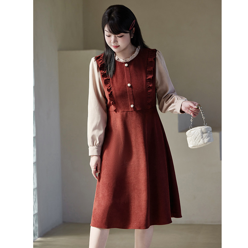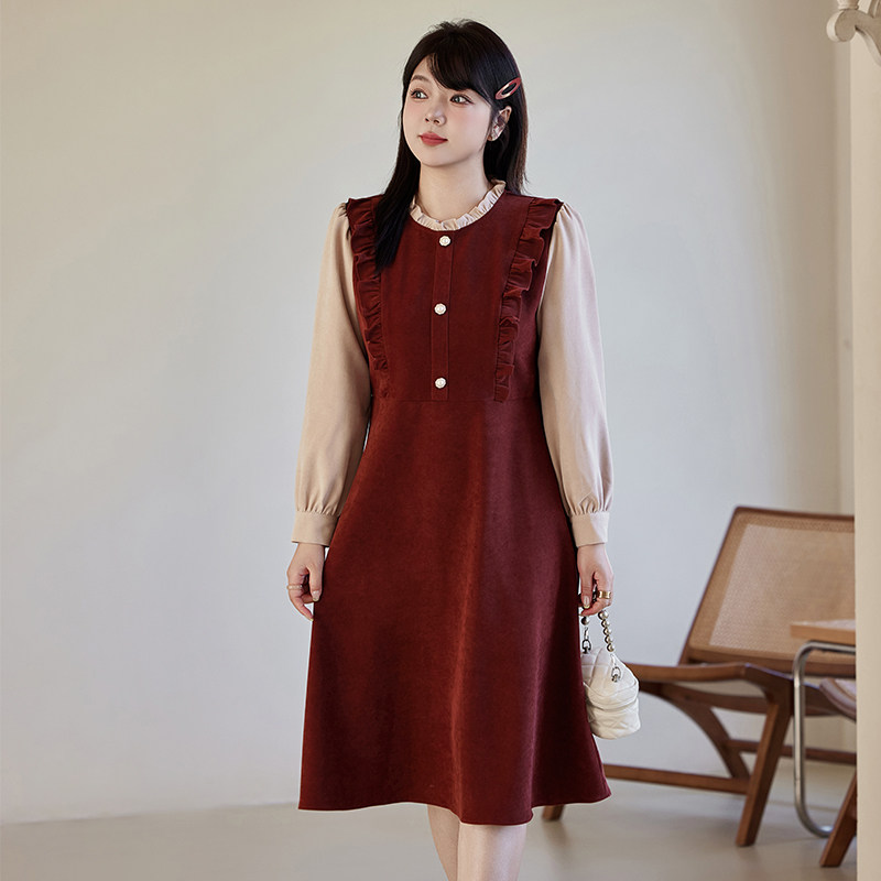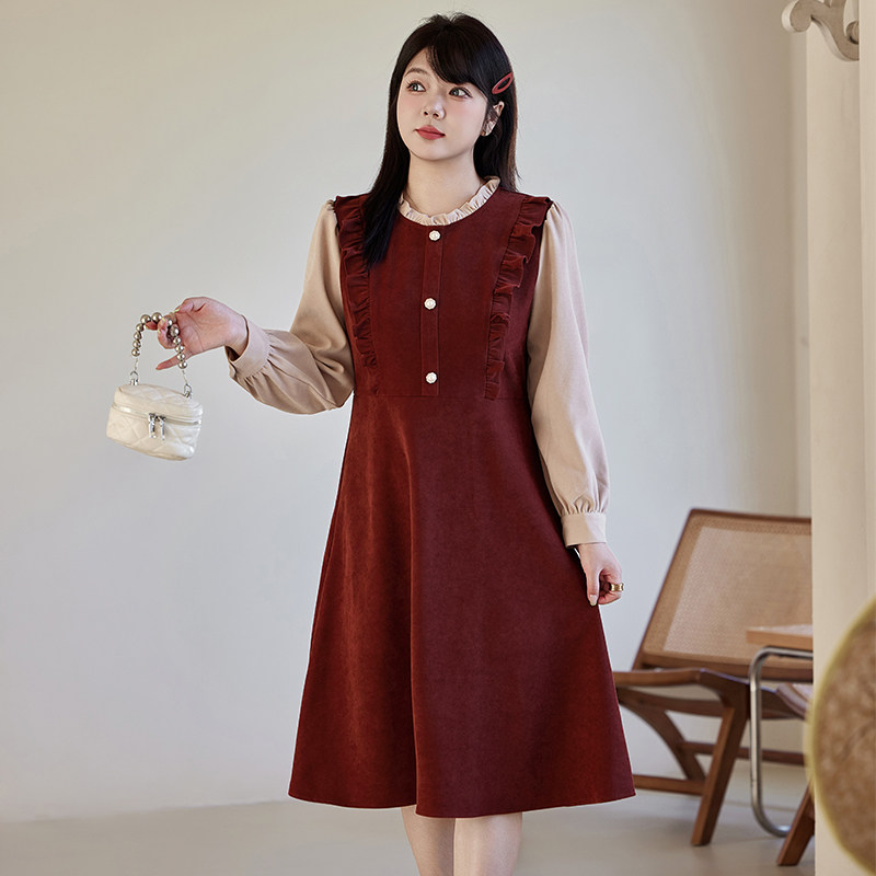 绮娑大码女装冬季新款法式显瘦胖妹妹连衣裙磨毛收腰假两件A字裙