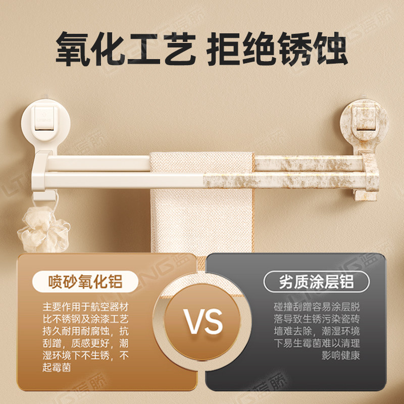 吸盘毛巾架卫生间免打孔浴室毛巾杆置物架洗手间厕所浴巾收纳挂杆