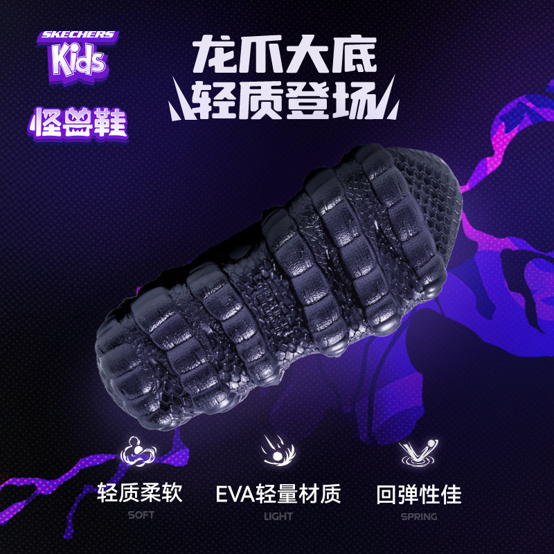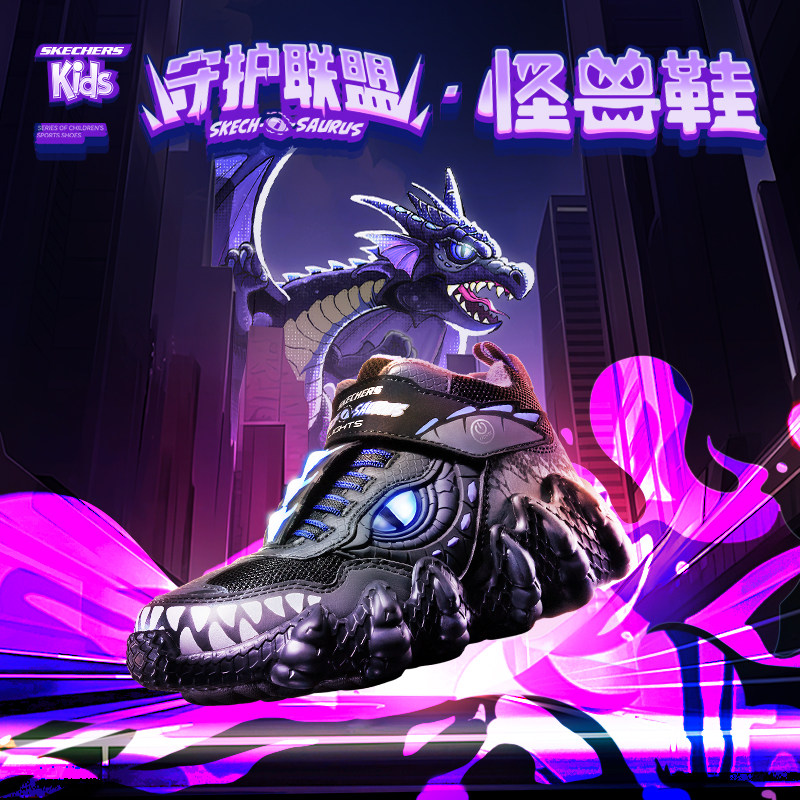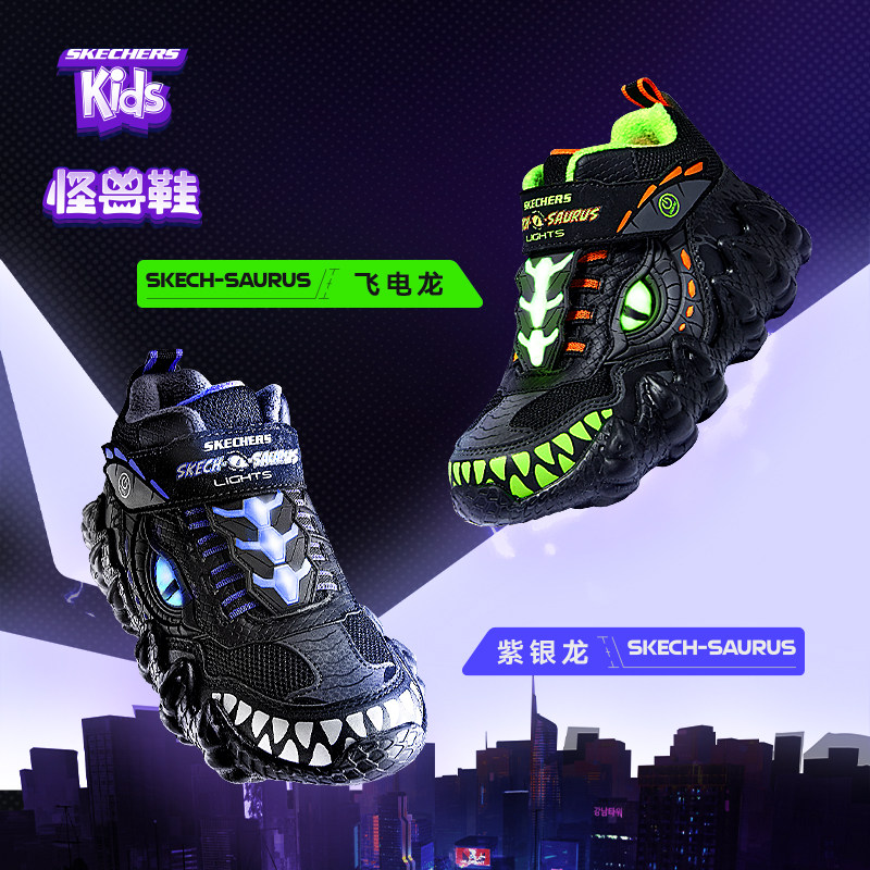Skechers斯凯奇魔术贴男童运动鞋2026秋季怪兽造型闪灯鞋中帮休闲
