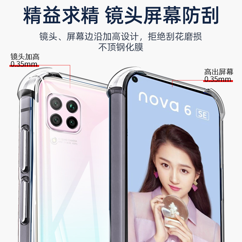 适用于华为nova6se手机壳NOVA6SE四角气囊透明防摔硅胶软壳JNY-AL10新款钢化膜款全包镜头保护套男女款超薄外