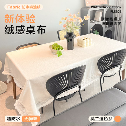 奶油风桌布防水免洗加厚绒布轻奢高级感布艺餐桌垫氛围感茶几台布