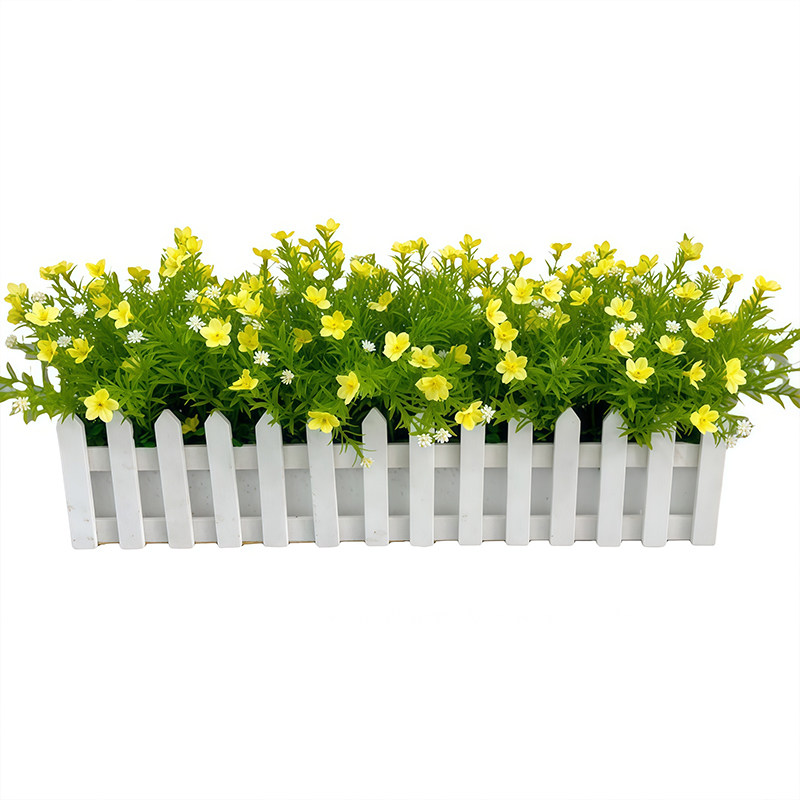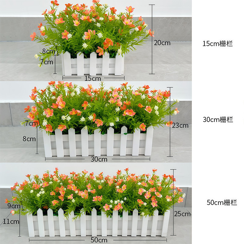 仿真满天星塑料绢花木栅栏盆栽装饰客厅办公落地隔断遮挡花艺摆件