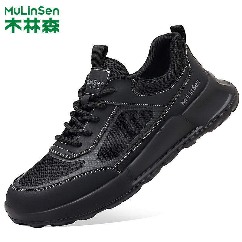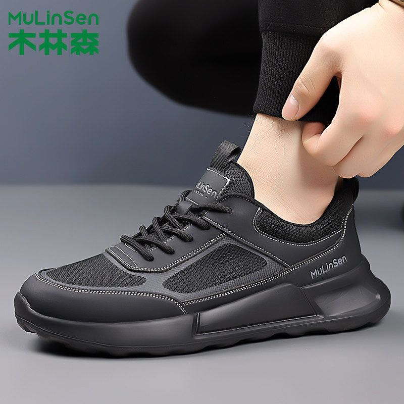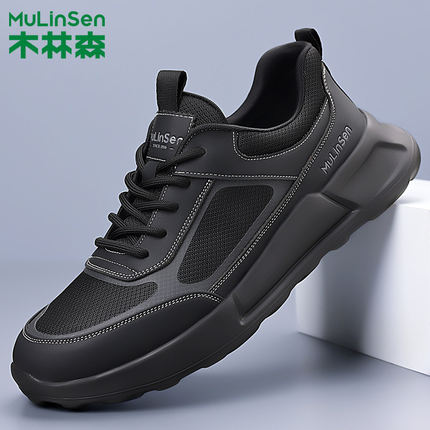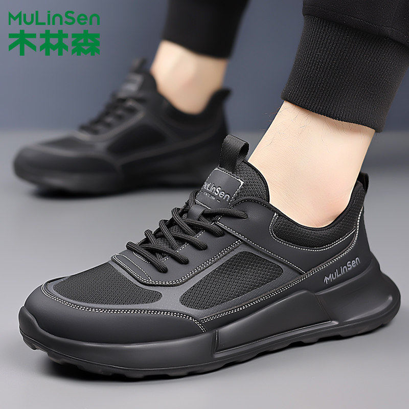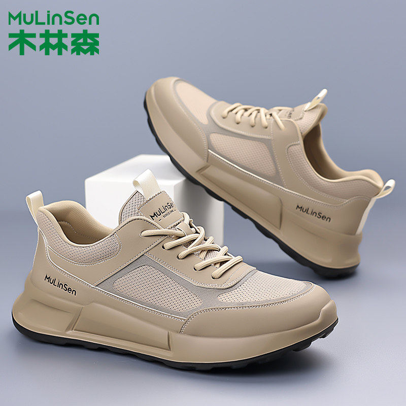 木林森男鞋2025春夏新款网面系带休闲鞋防滑耐磨男士户外跑步鞋子